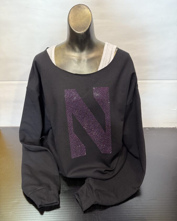 Bling Off The Shoulder Sweatshirt- Northwestern