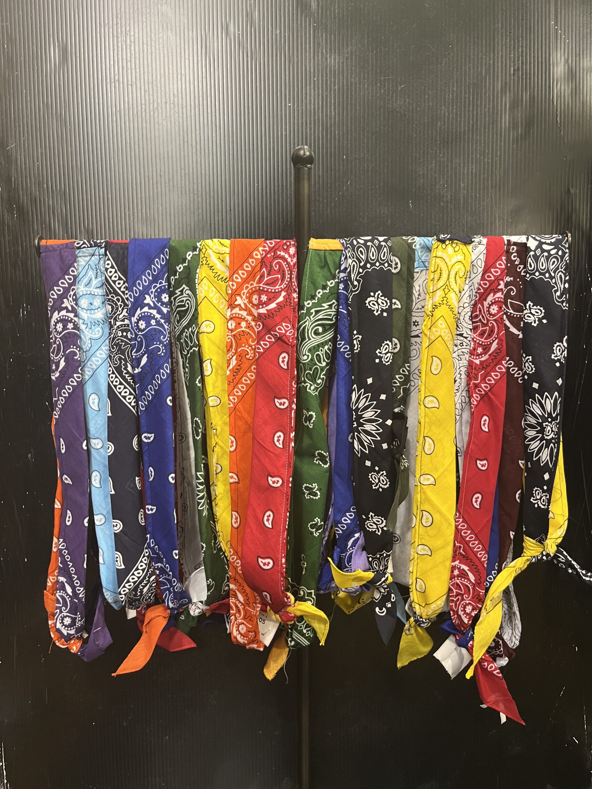Bandana Belt is 100% cotton and 45 inches long. Ties at waist. (Shorts not included)
