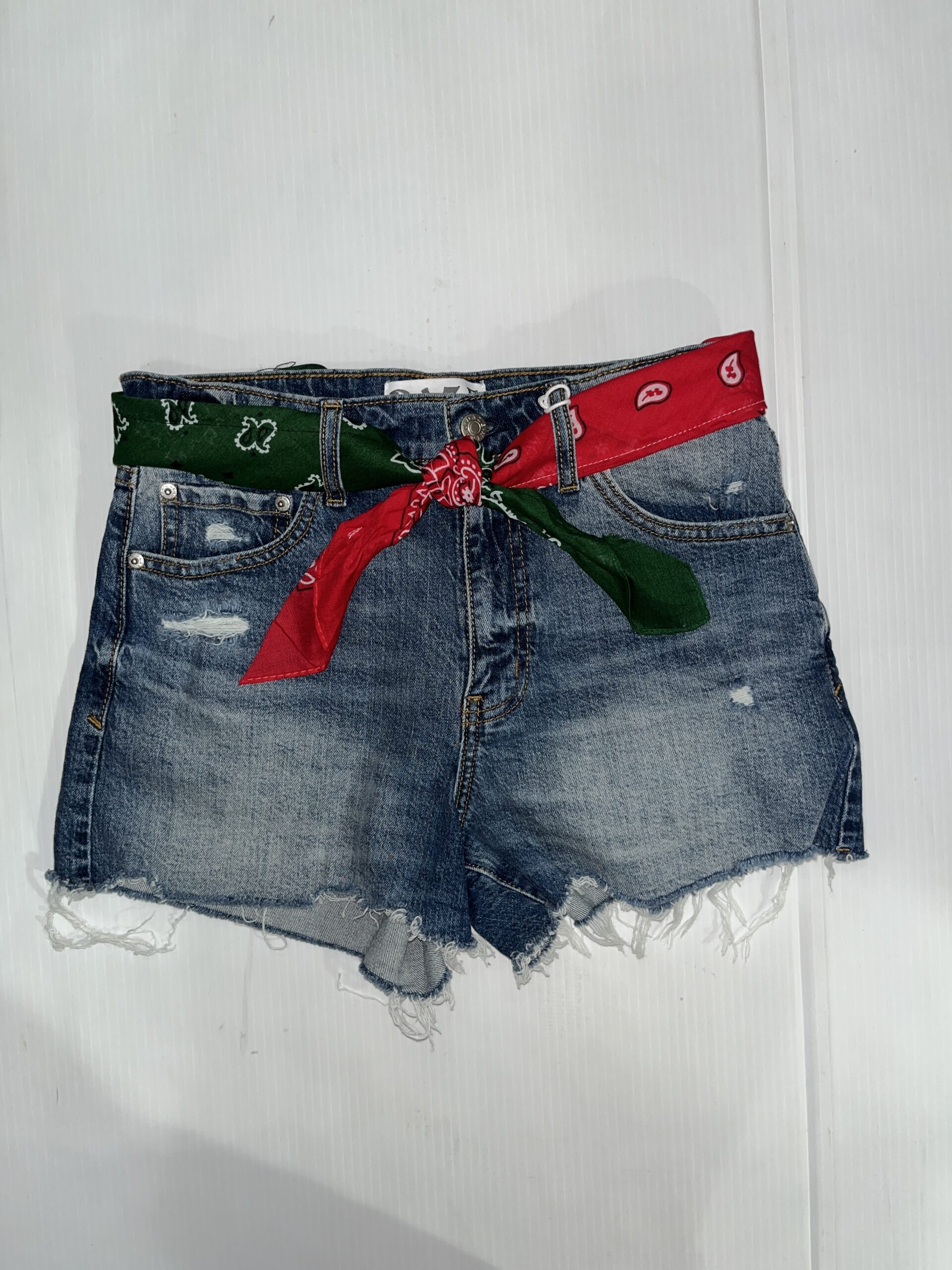 Bandana Belt is 100% cotton and 45 inches long. Ties at waist. (Shorts not included)