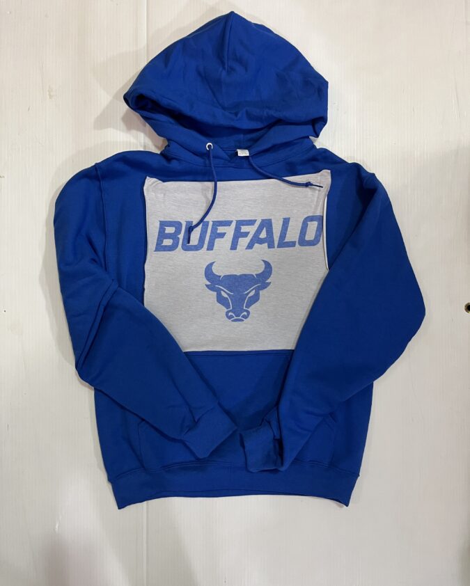 Super Soft graphite gray Hoodie with bandana pocket, split color bandana hood, banded bottom, and college logo. 50%cotton/ 50% polyester. (For other color options, call 516-364-1700!!)