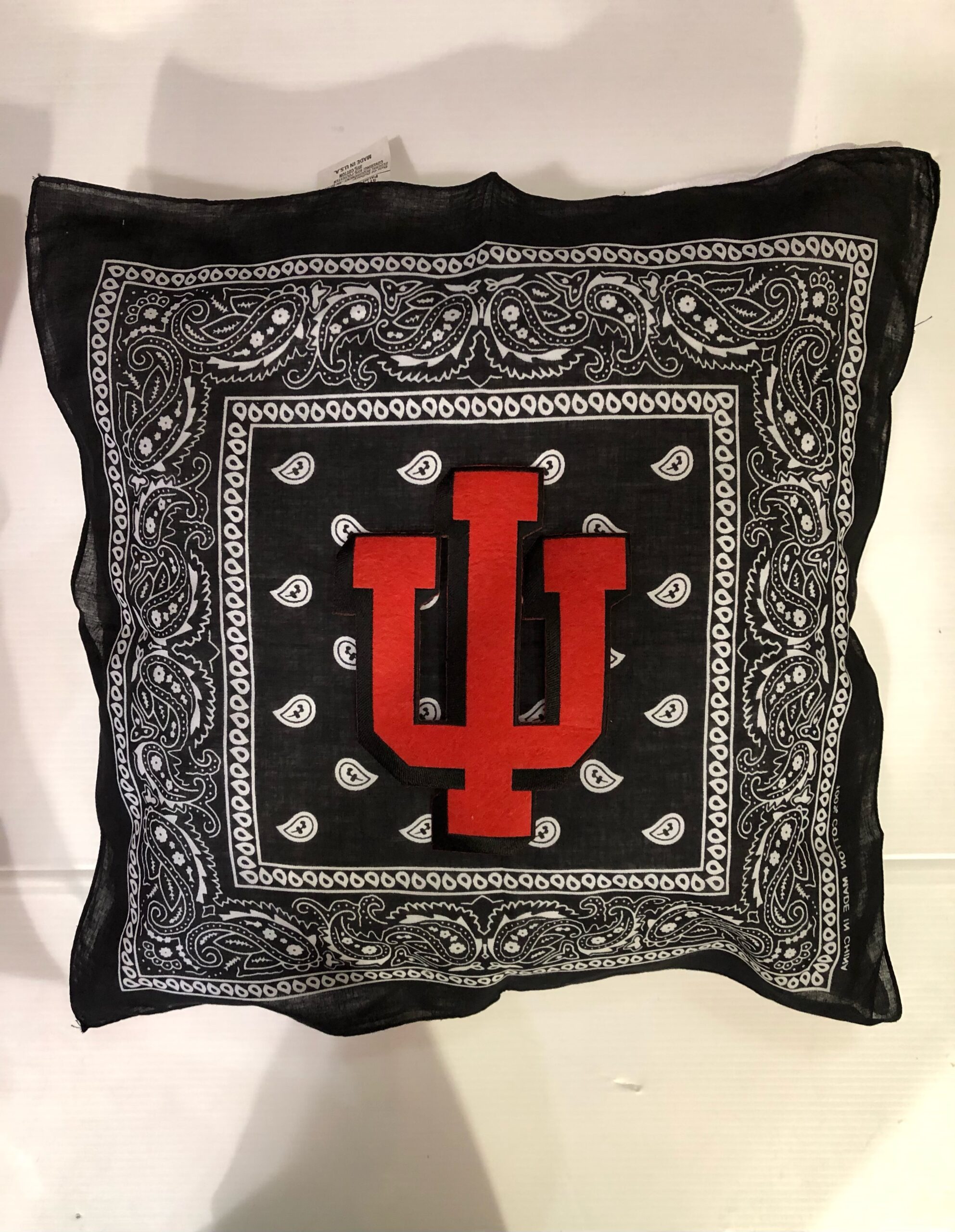 Soft 20X20 inch bandana pillow boasting your school logo or mascot, 100% polyester fiber with covering 65% polyester/35% cotton.