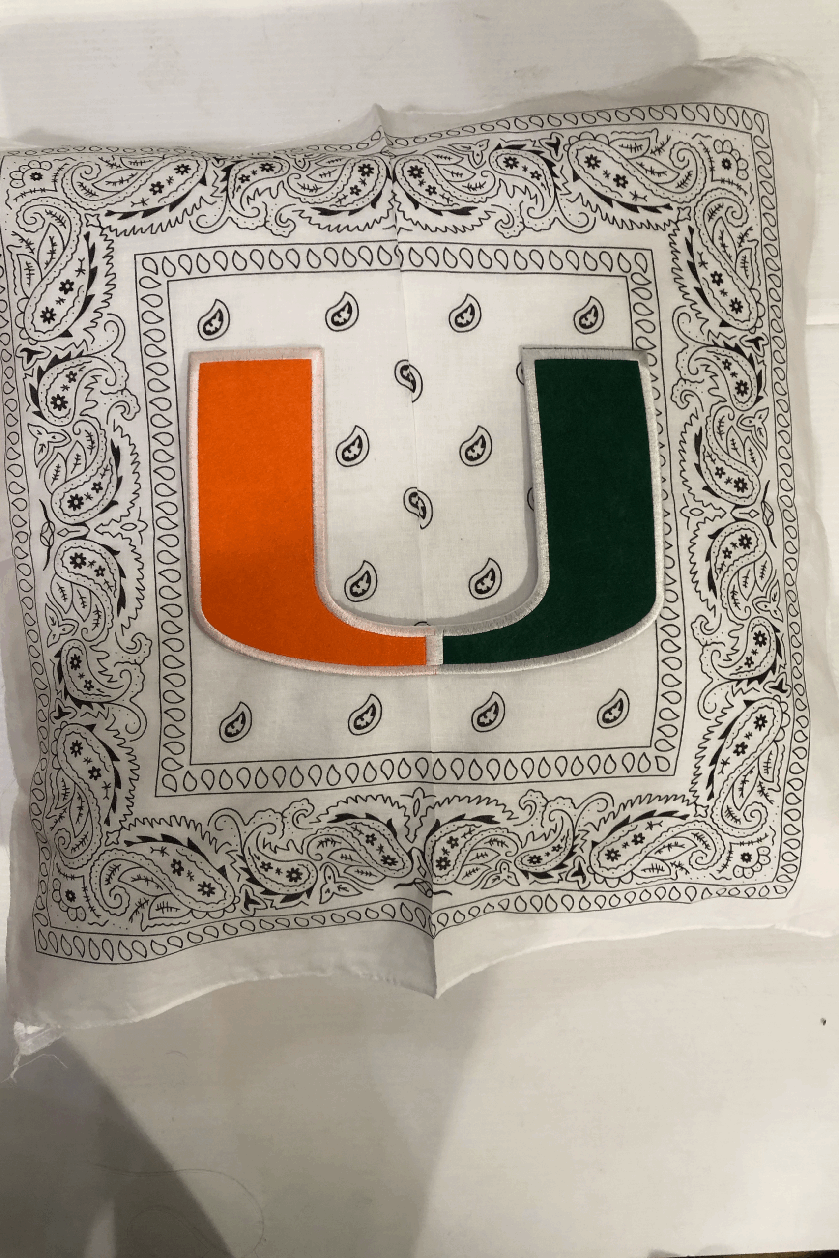 Soft 20X20 inch bandana pillow boasting your school logo or mascot, 100% polyester fiber fill, and 65% polyester/35%cotton covering.