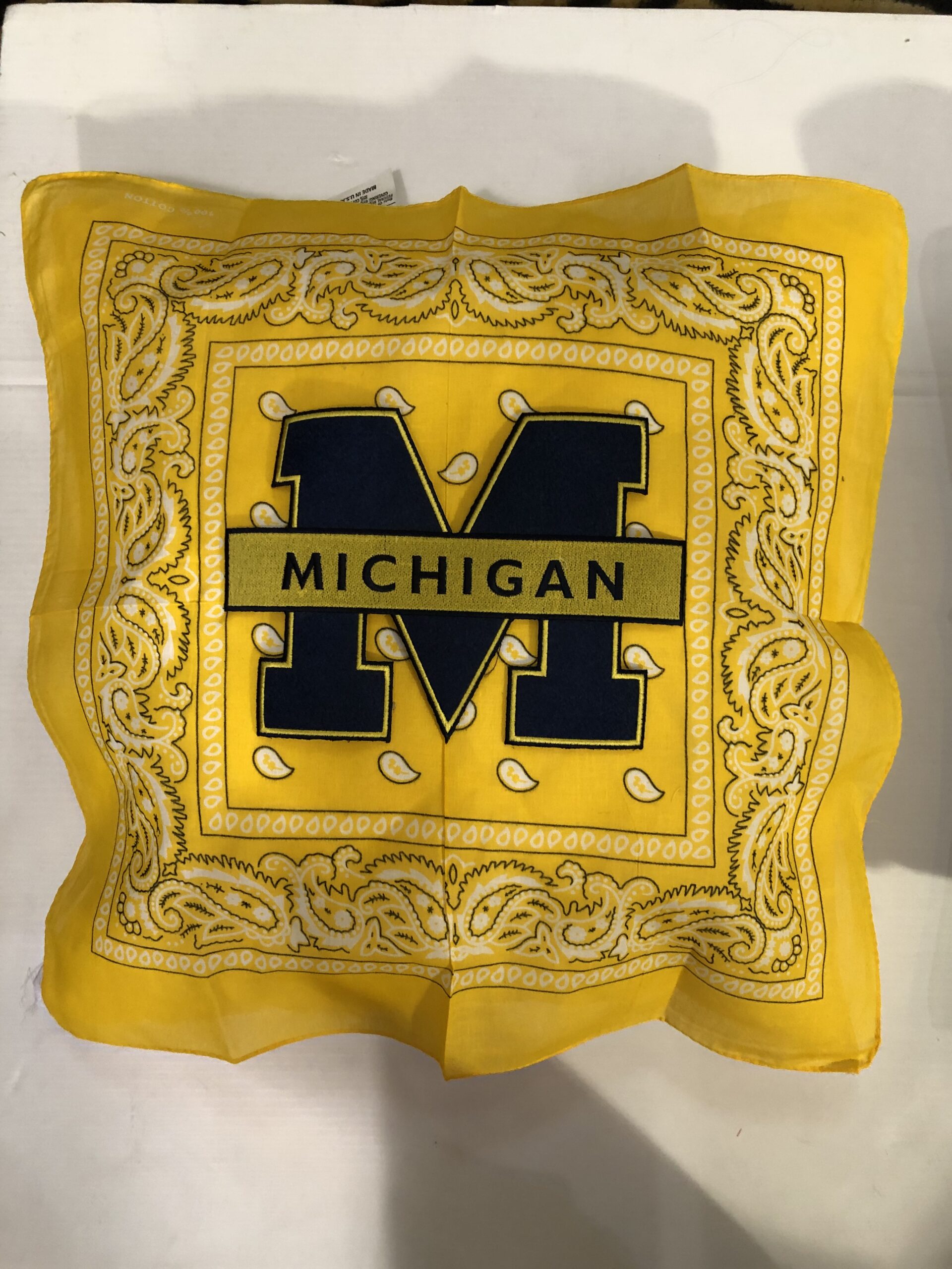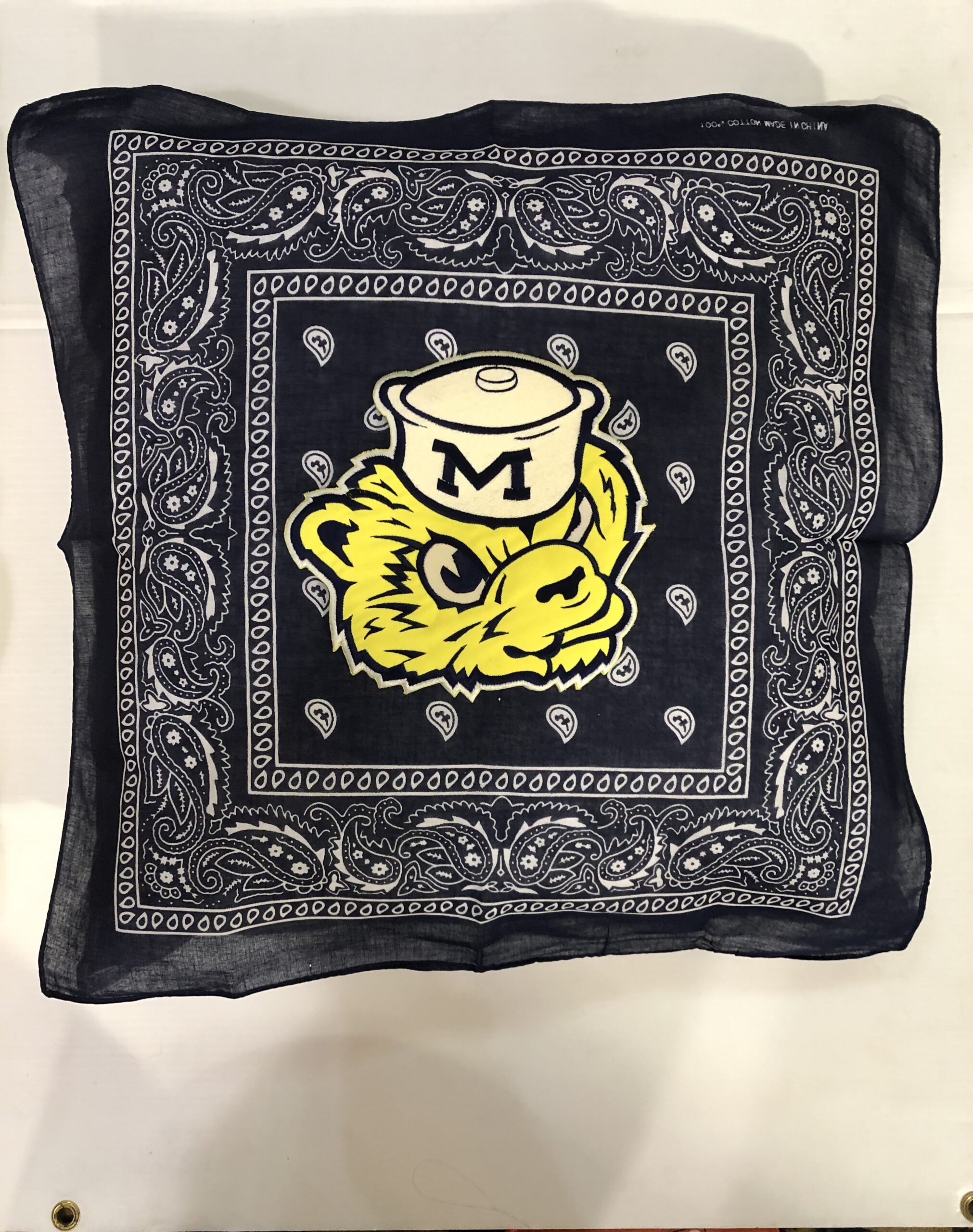 Soft 20X20 inch bandana pillow boasting your school logo or mascot, 100% polyester fiber fill, and 65% polyester/35%cotton covering.