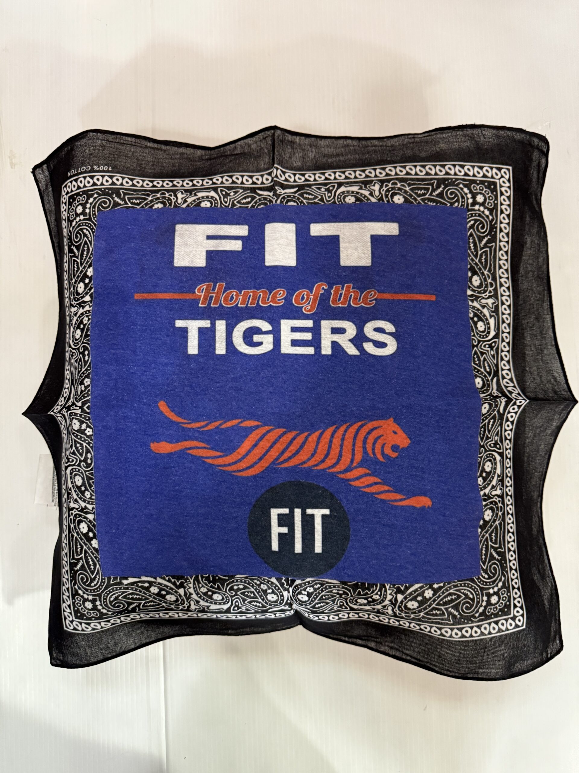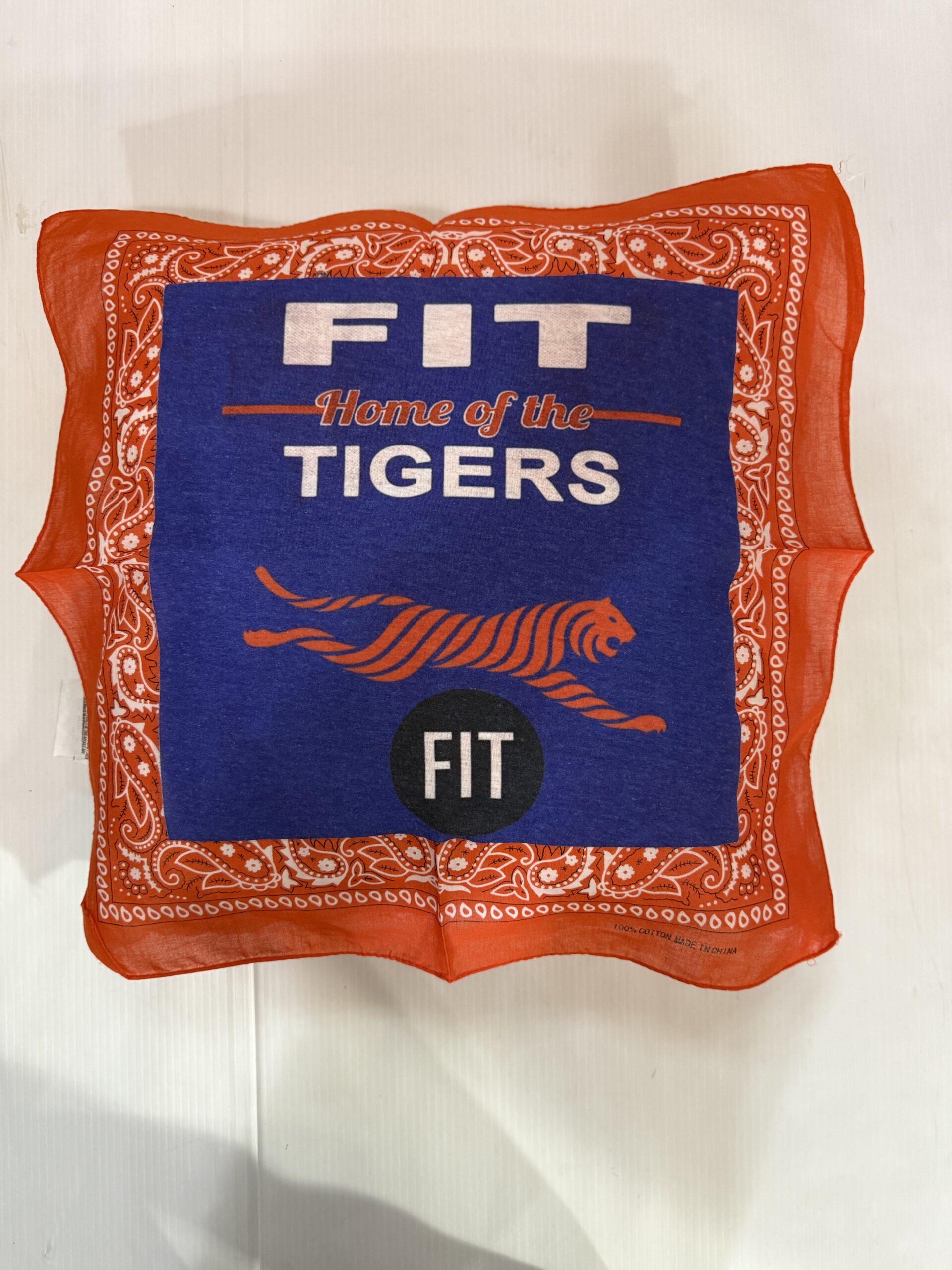 Soft 20X20 inch bandana pillow with vintage tee square, 100% polyester fiber fill, and 65% polyester/35%cotton covering.