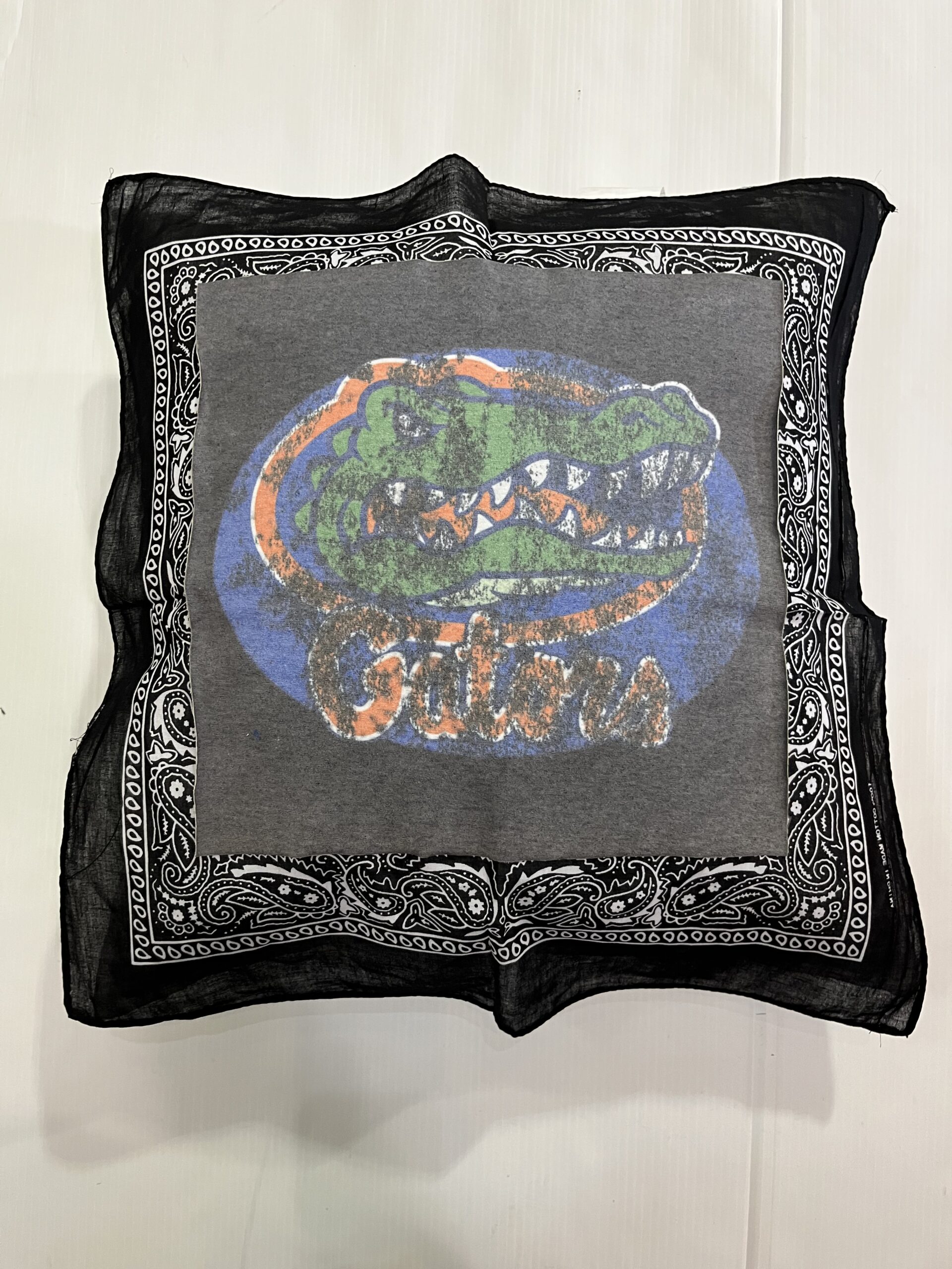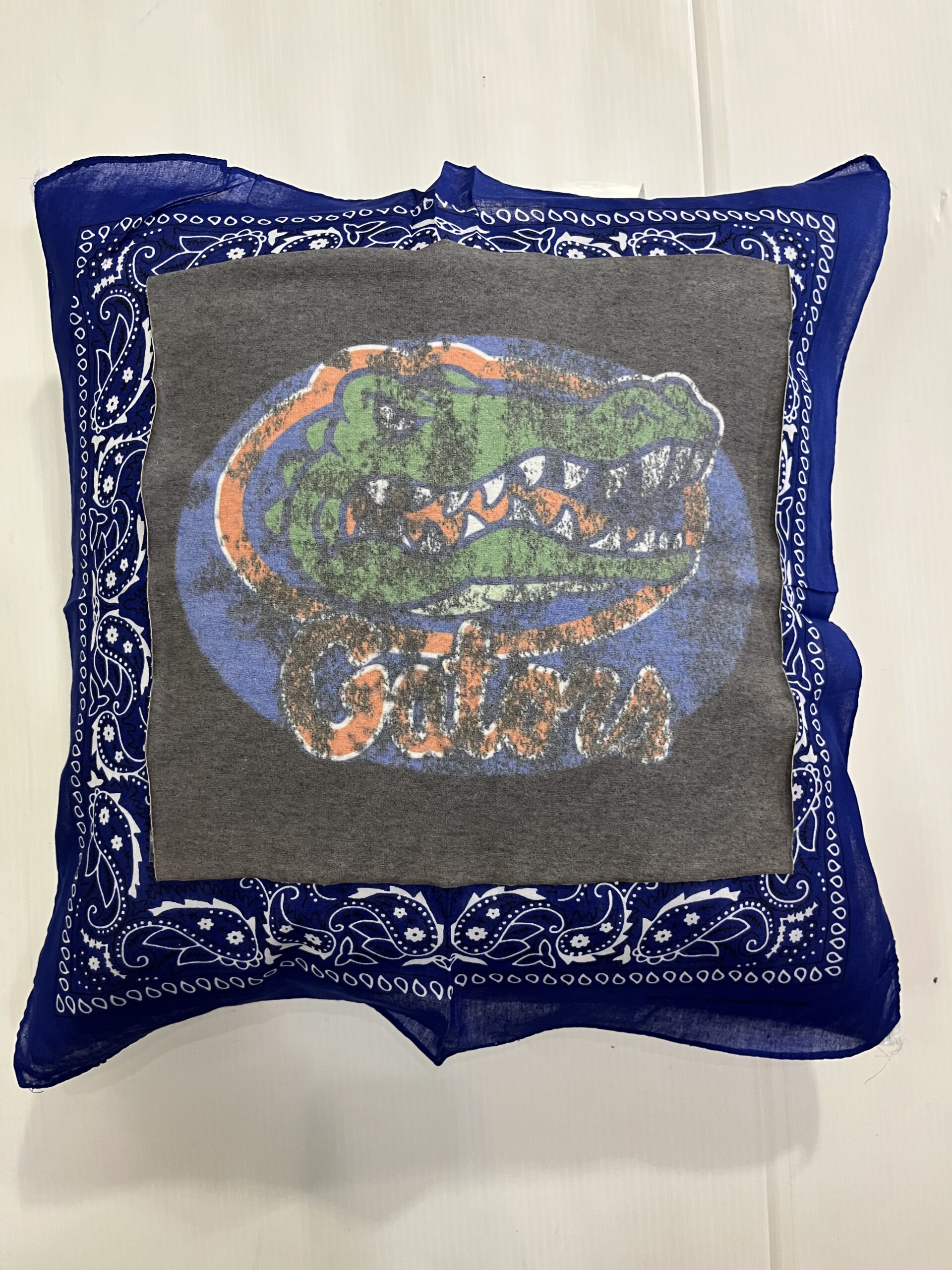 Soft 20X20 inch bandana pillow with vintage tee square, 100% polyester fiber fill, and 65% polyester/35%cotton covering.