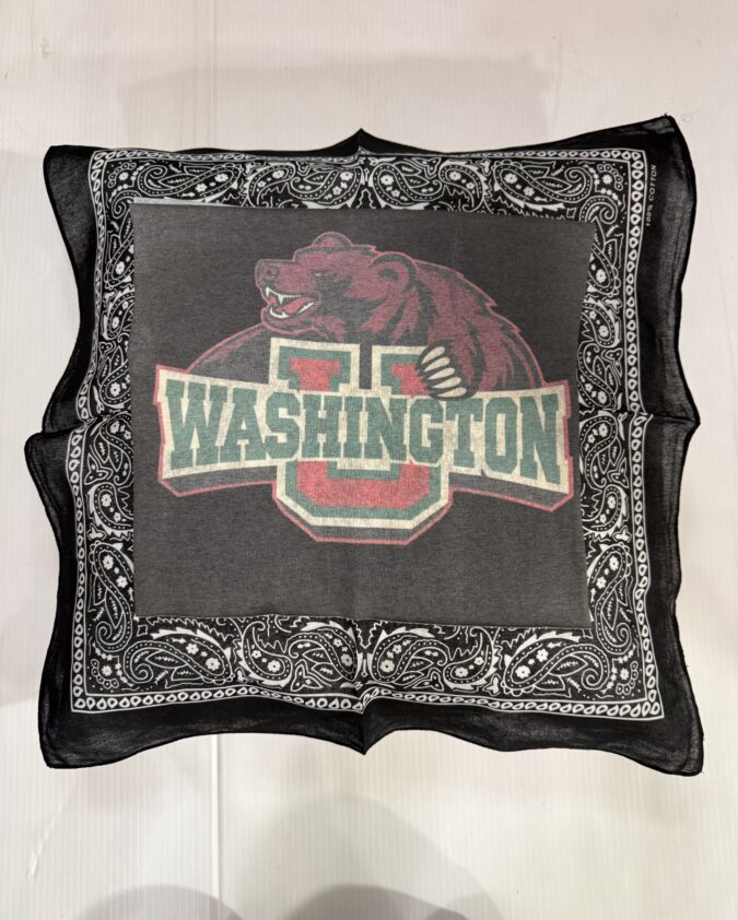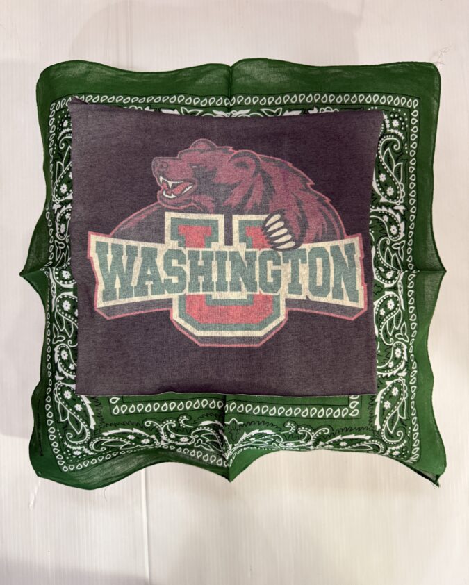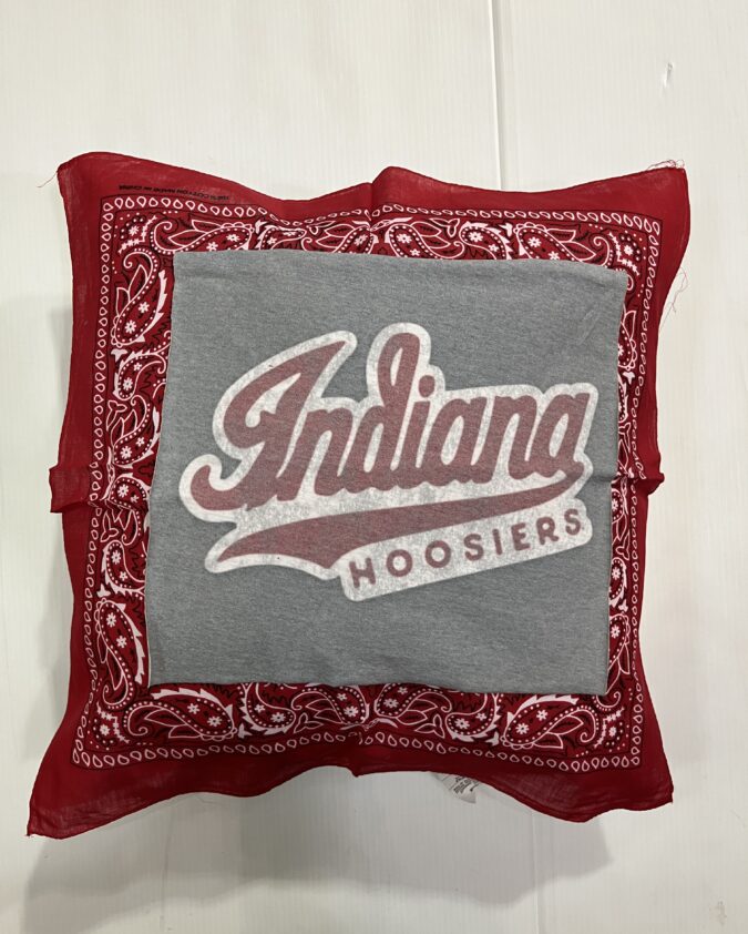 Soft 20X20 inch bandana pillow with vintage tee square, 100% polyester fiber fill, and 65% polyester/35%cotton covering.