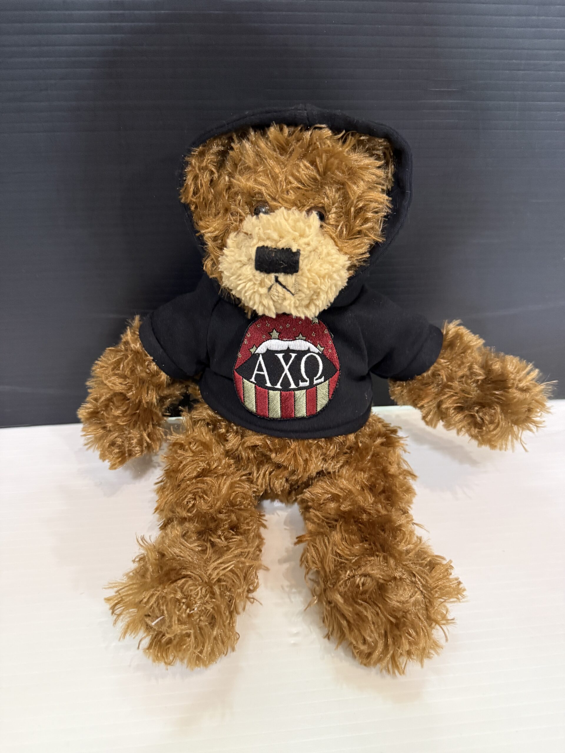 10 inch Plush Teddy Bear wearing sorority hoodie.