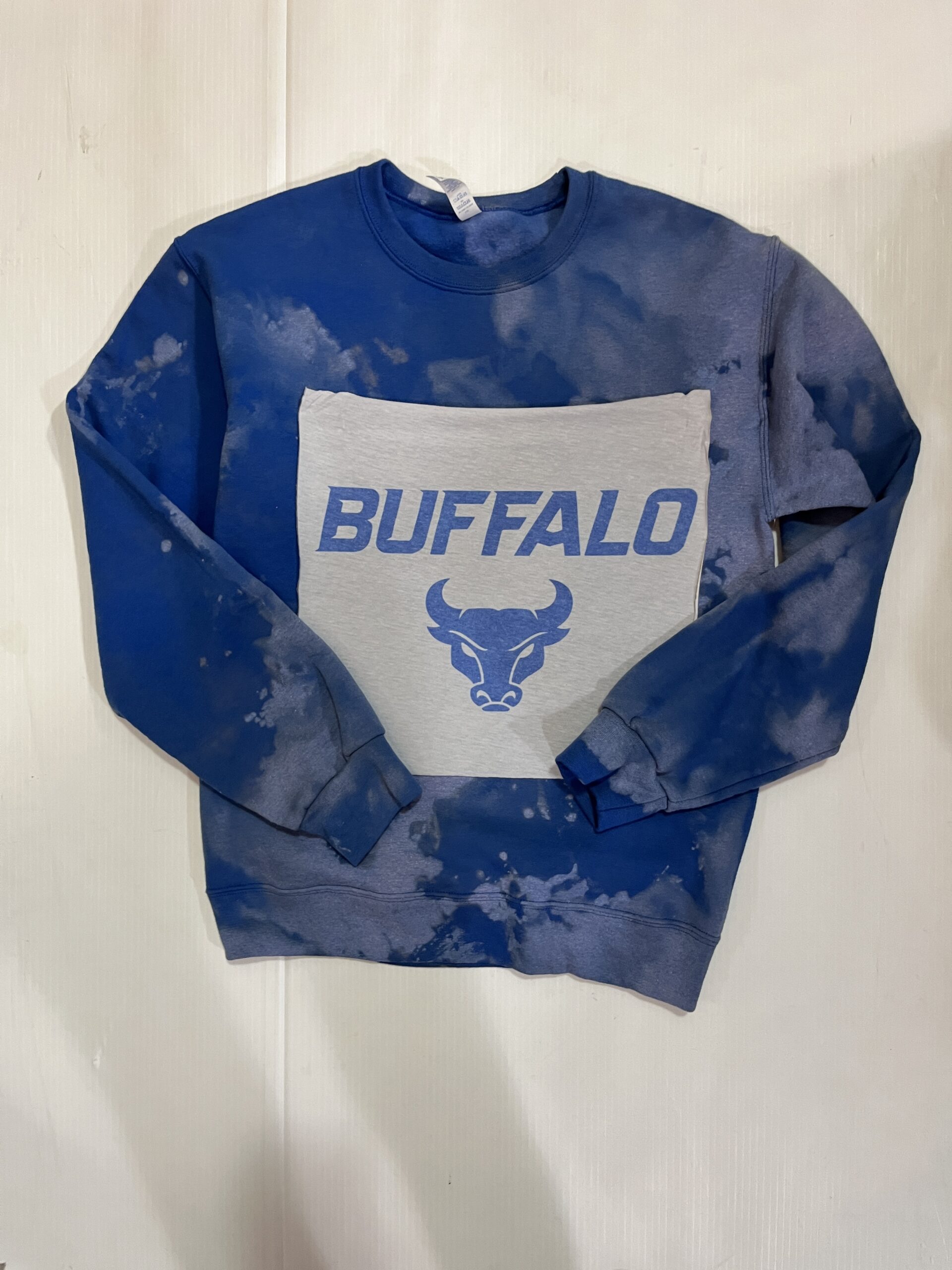 Soft bleached crewneck sweatshirt with a vintage Tee square sewn on the front.