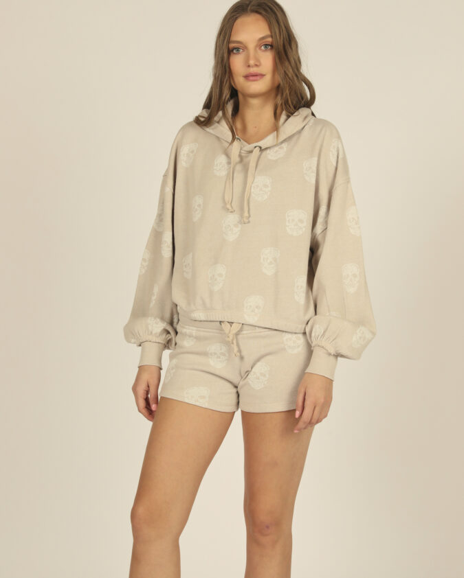 Soft bleached crewneck sweatshirt with a vintage Tee square sewn on the front.