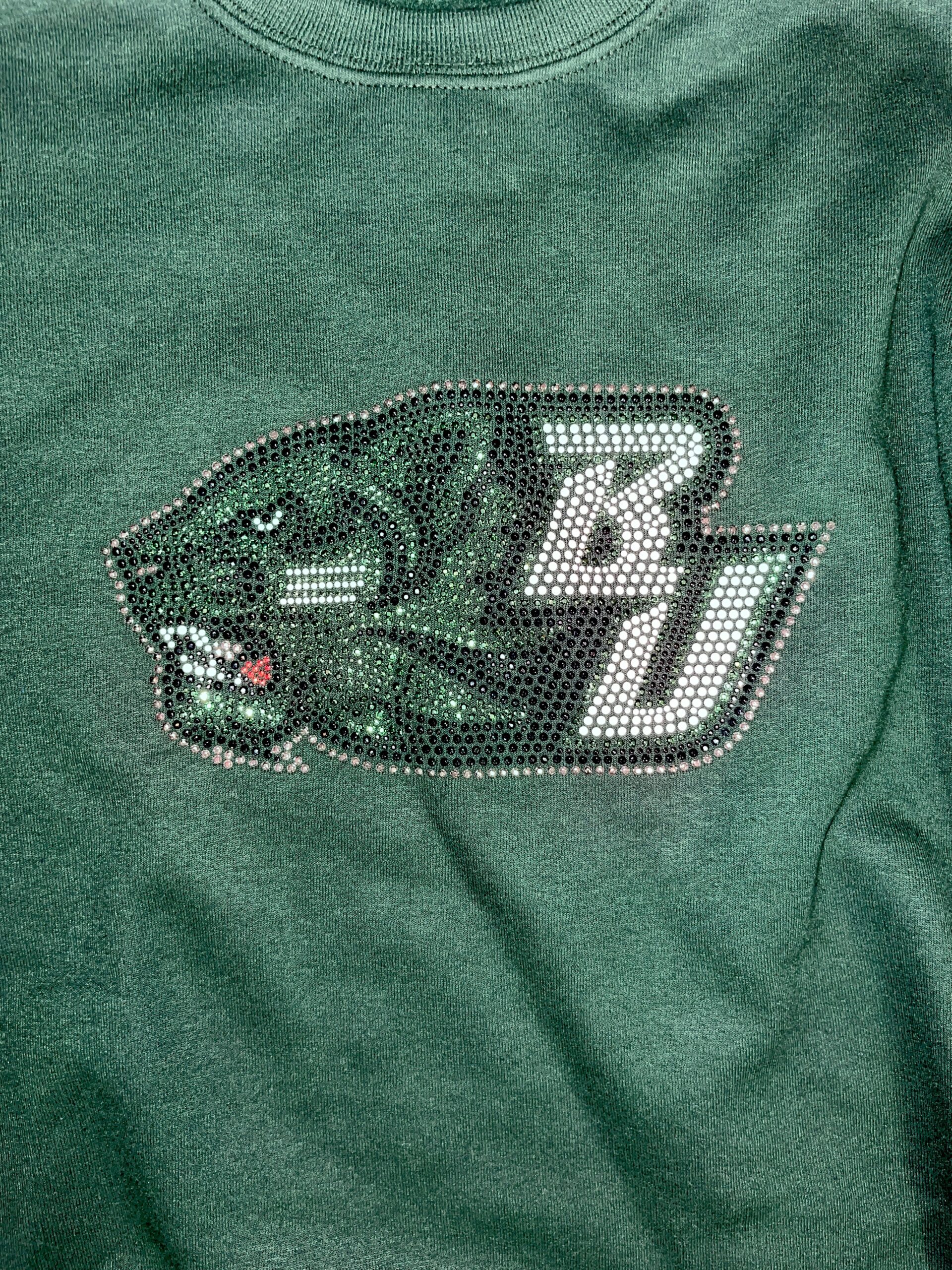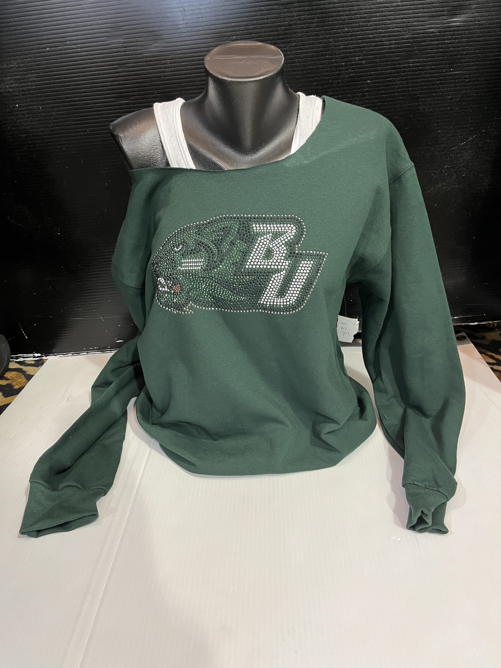 Soft fleece off the shoulder sweatshirt with bling logo