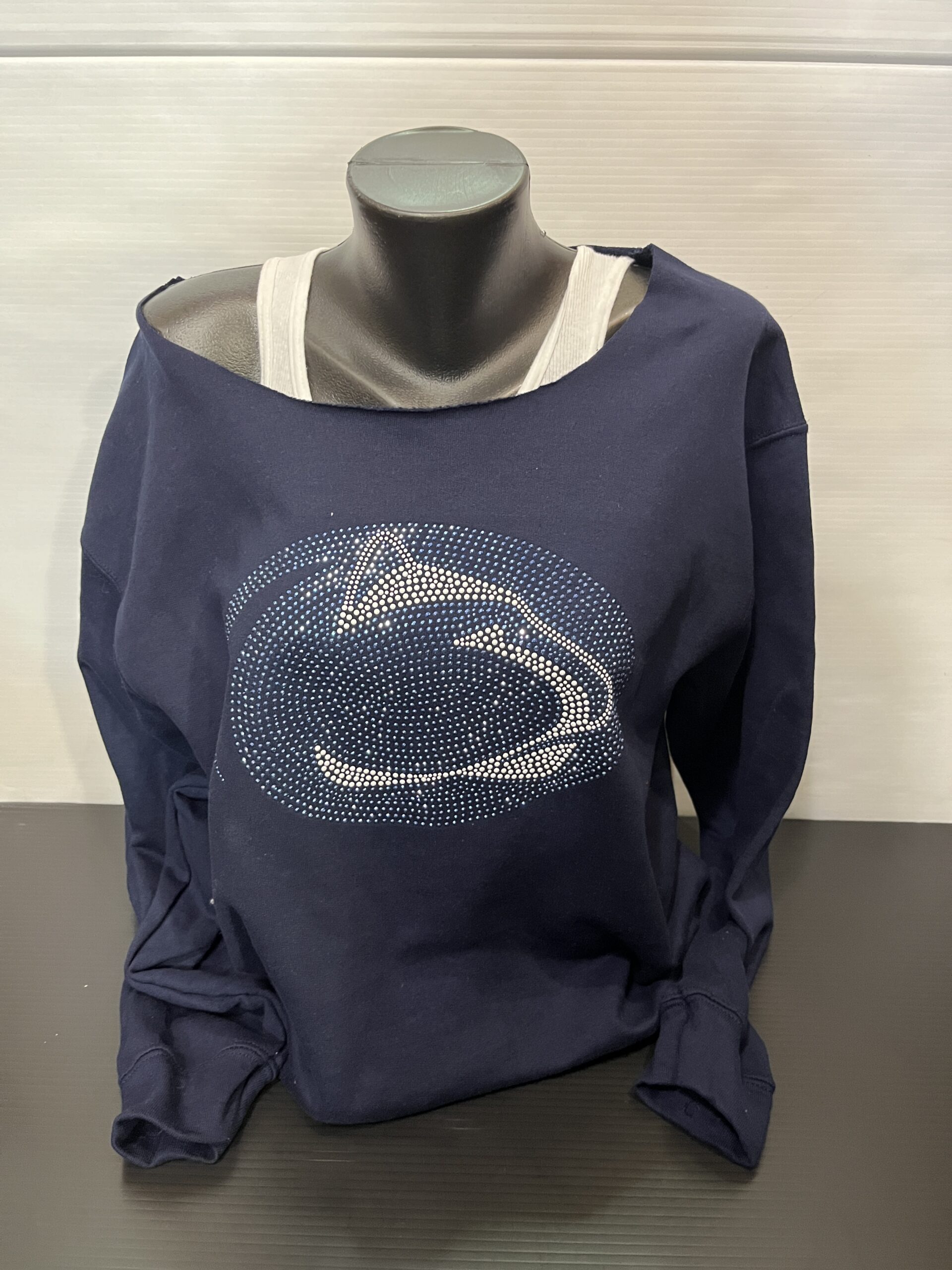 Soft fleece off the shoulder sweatshirt with bling logo