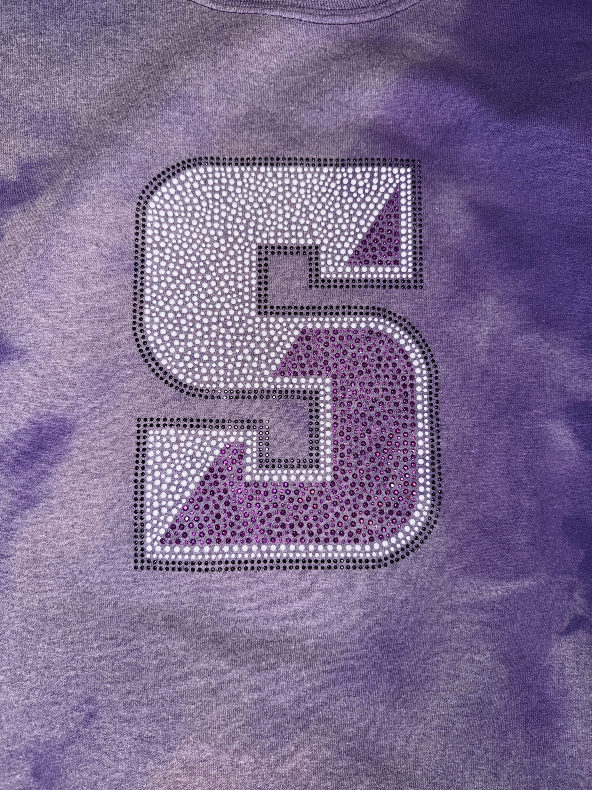 Soft fleece off the shoulder sweatshirt with bling logo