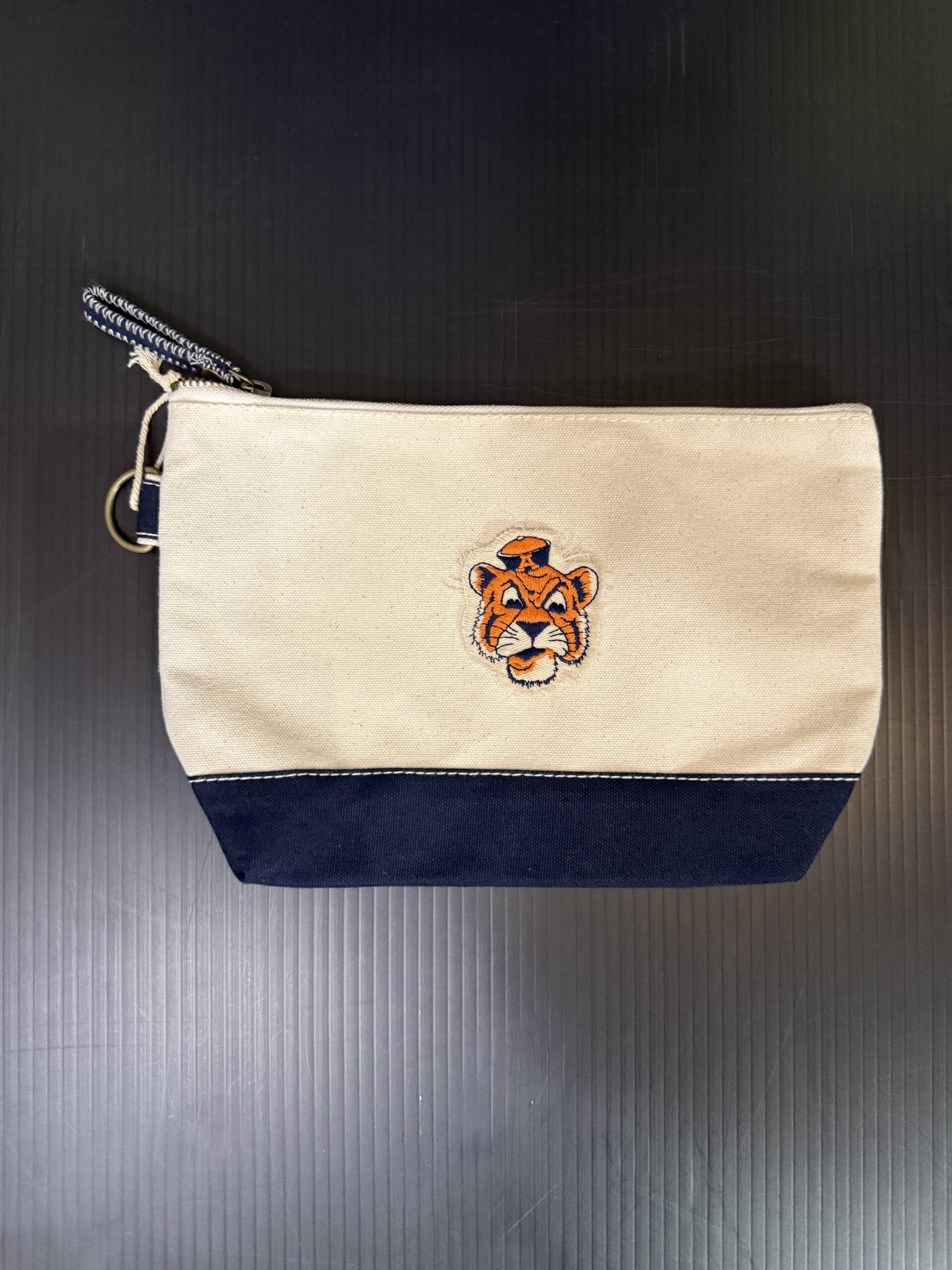 Heavyweight durable cotton canvas, sturdy metal zipper with handy pull tab for easy access, reinforced bottom for extra structure, and metal d-ring for easy attachment to bags, keys, or gear. 11W x 7H x 3D inch