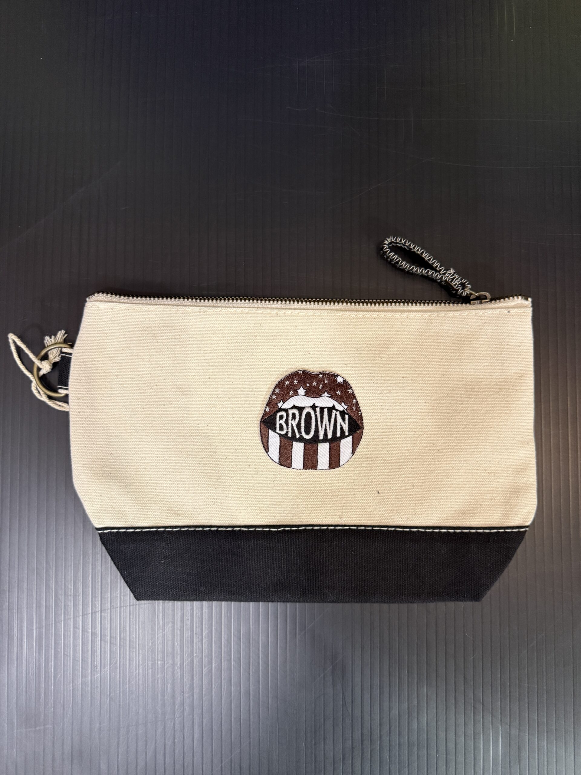 Heavyweight durable cotton canvas, sturdy metal zipper with handy pull tab for easy access, reinforced bottom for extra structure, and metal d-ring for easy attachment to bags, keys, or gear. 11W x 7H x 3D inch