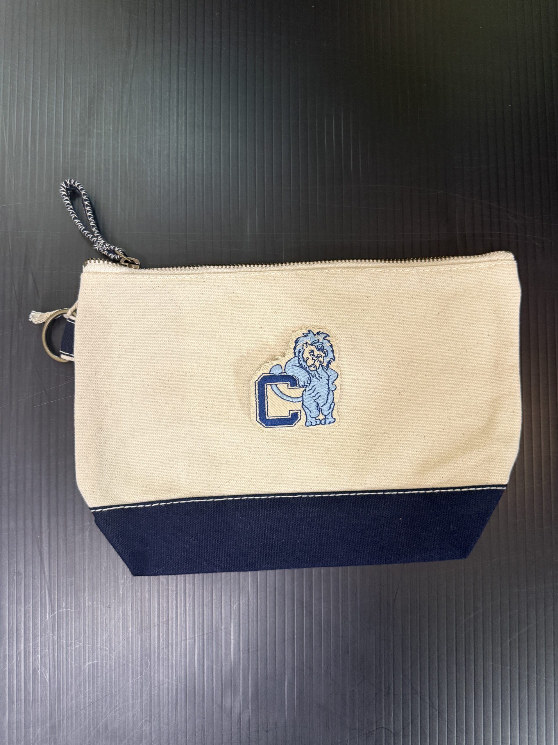 Heavyweight durable cotton canvas, sturdy metal zipper with handy pull tab for easy access, reinforced bottom for extra structure, and metal d-ring for easy attachment to bags, keys, or gear. 11W x 7H x 3D inch