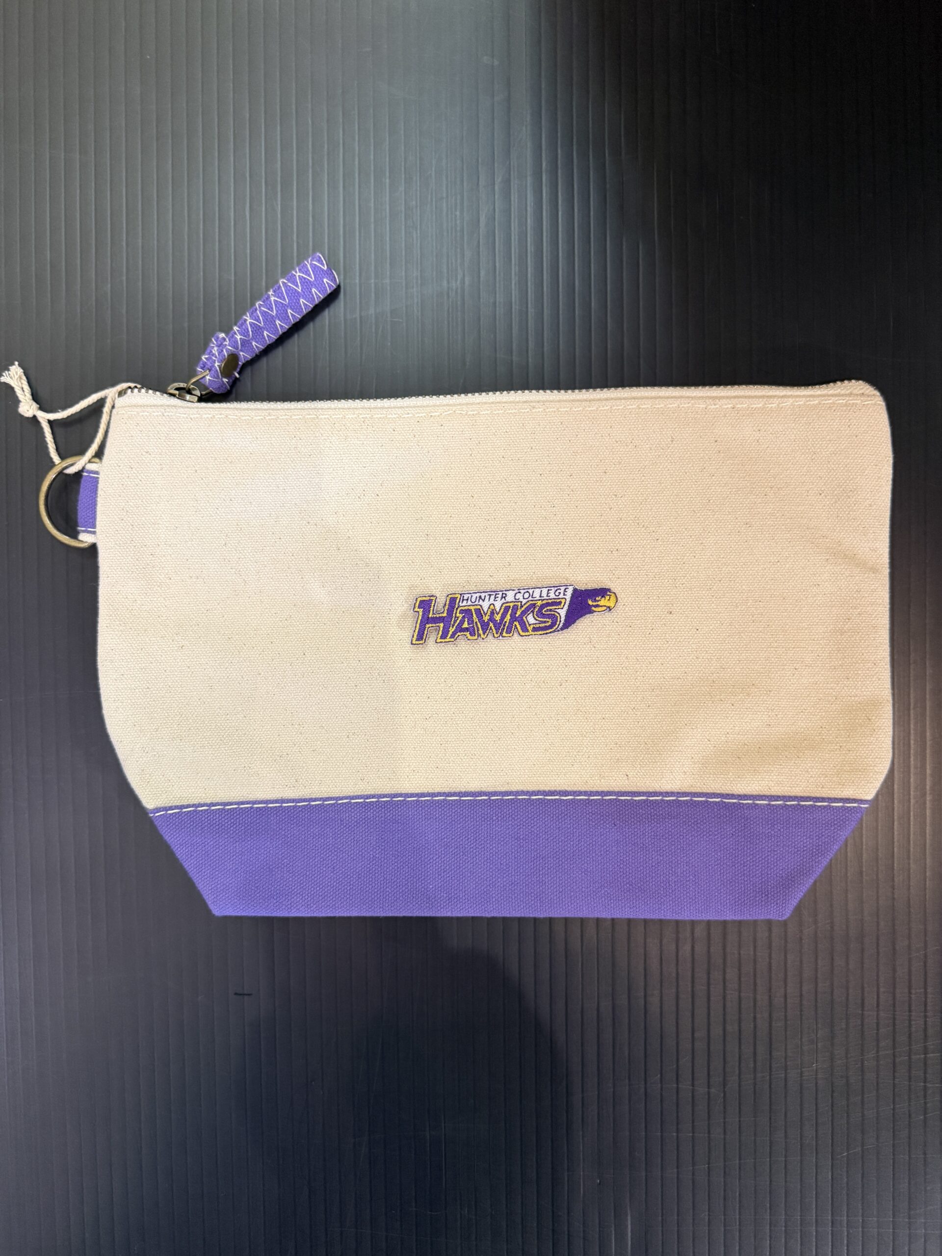 Heavyweight durable cotton canvas, sturdy metal zipper with handy pull tab for easy access, reinforced bottom for extra structure, and metal d-ring for easy attachment to bags, keys, or gear. 11W x 7H x 3D inch