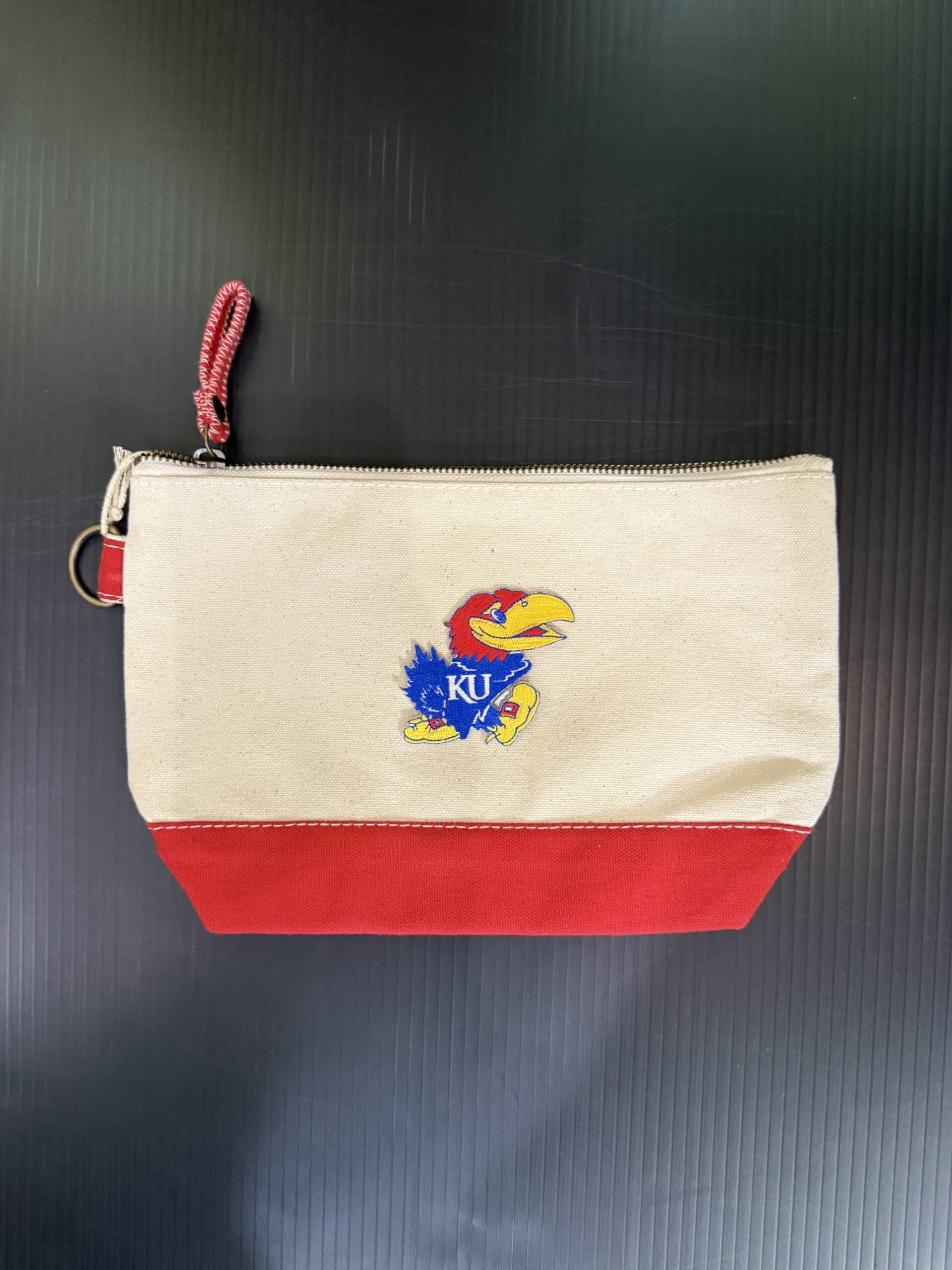 Heavyweight durable cotton canvas, sturdy metal zipper with handy pull tab for easy access, reinforced bottom for extra structure, and metal d-ring for easy attachment to bags, keys, or gear. 11W x 7H x 3D inch