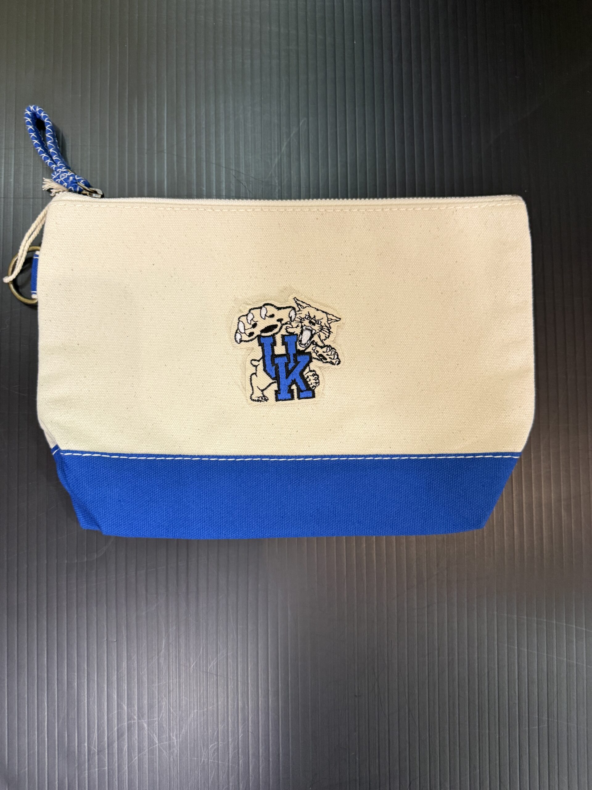 Heavyweight durable cotton canvas, sturdy metal zipper with handy pull tab for easy access, reinforced bottom for extra structure, and metal d-ring for easy attachment to bags, keys, or gear. 11W x 7H x 3D inch