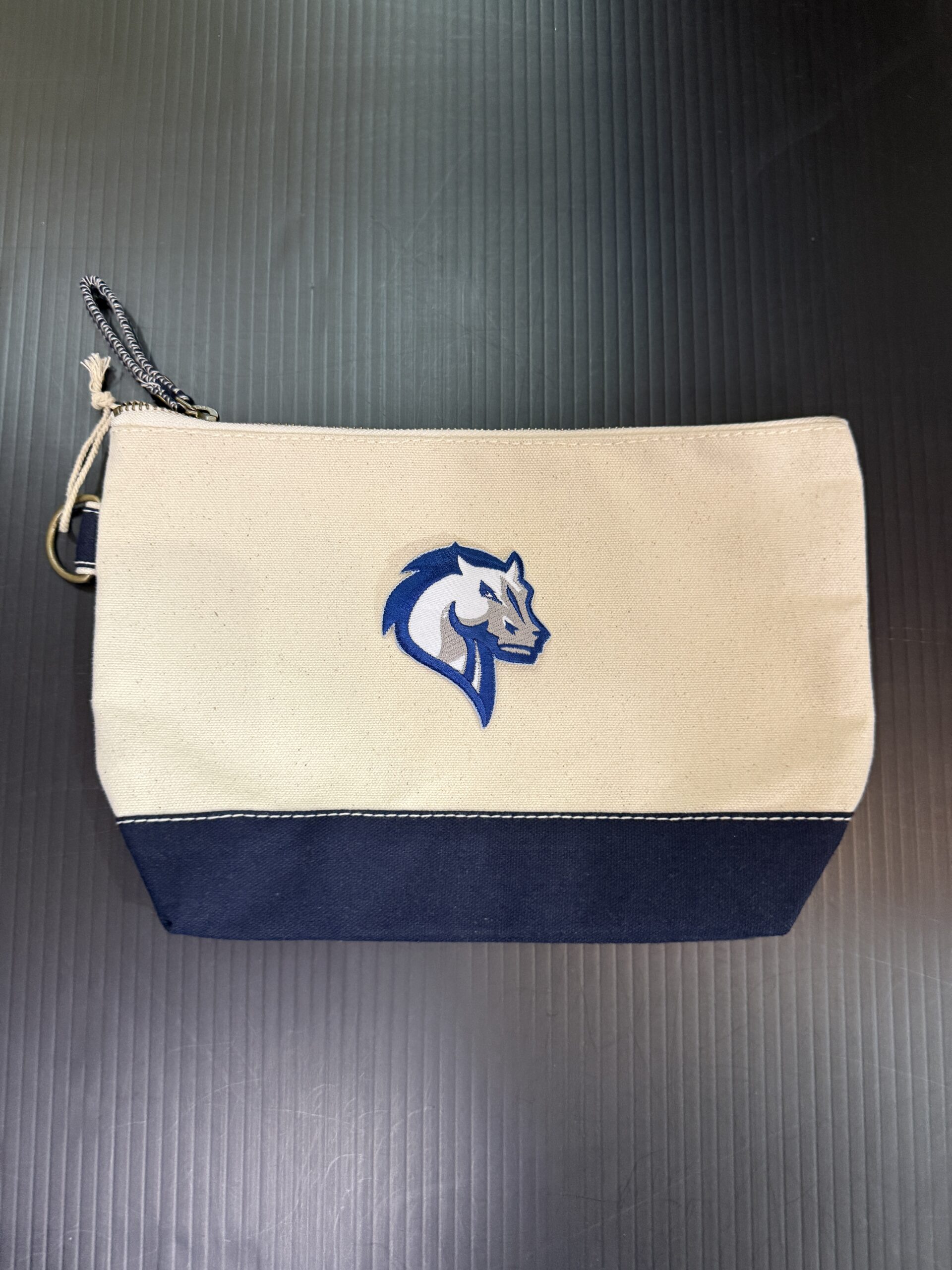 Heavyweight durable cotton canvas, sturdy metal zipper with handy pull tab for easy access, reinforced bottom for extra structure, and metal d-ring for easy attachment to bags, keys, or gear. 11W x 7H x 3D inch