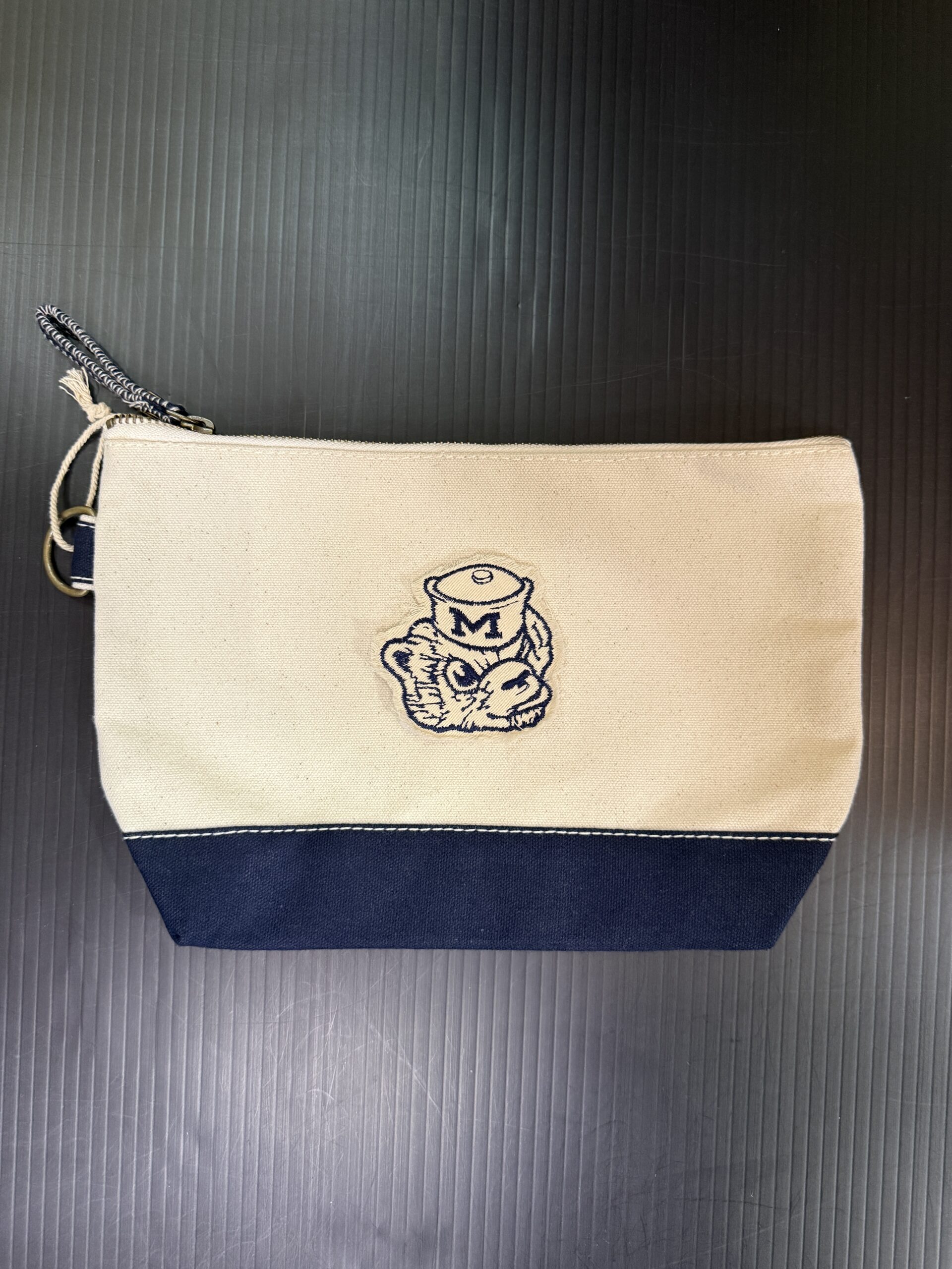 Heavyweight durable cotton canvas, sturdy metal zipper with handy pull tab for easy access, reinforced bottom for extra structure, and metal d-ring for easy attachment to bags, keys, or gear. 11W x 7H x 3D inch