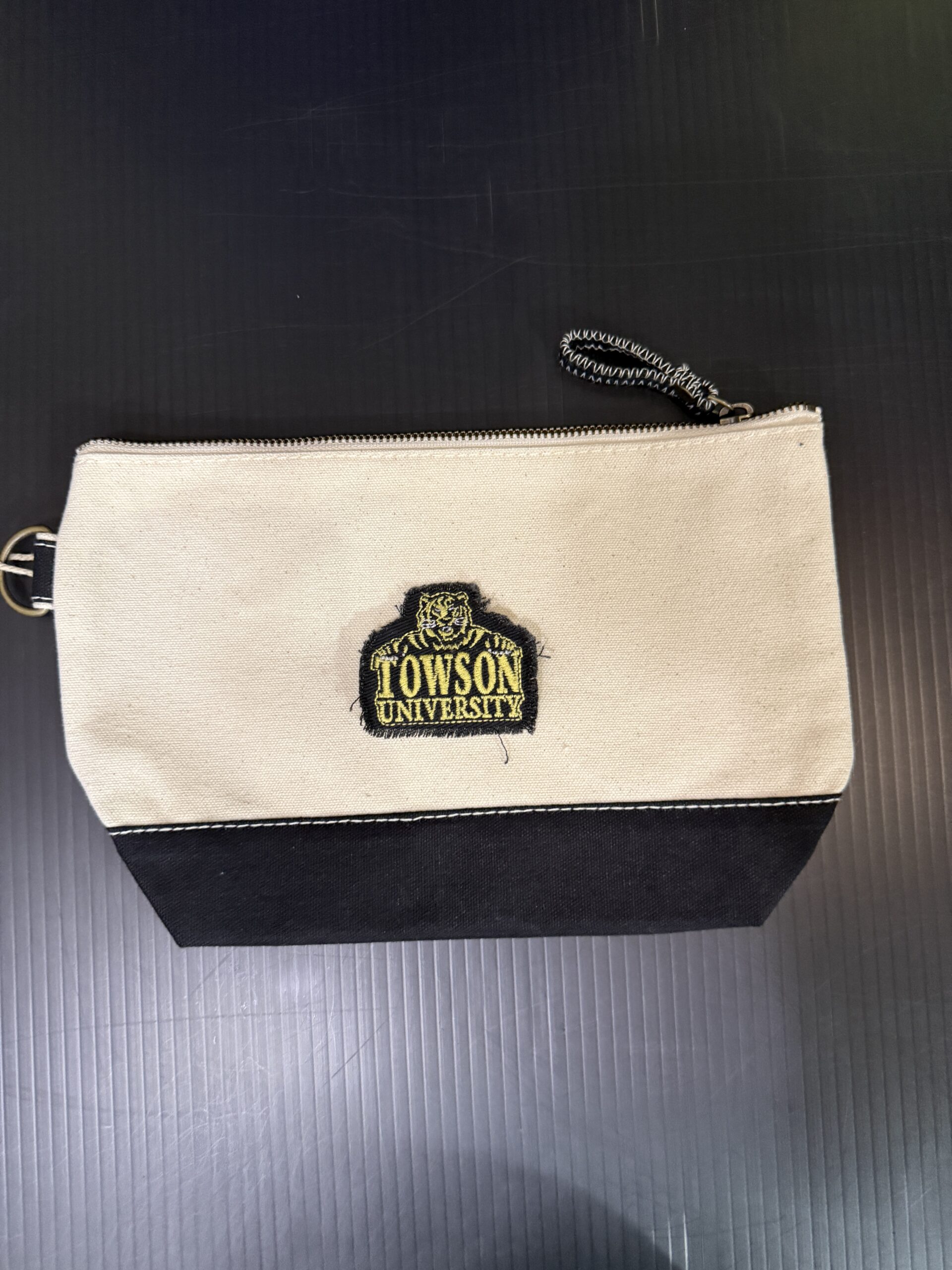 Heavyweight durable cotton canvas, sturdy metal zipper with handy pull tab for easy access, reinforced bottom for extra structure, and metal d-ring for easy attachment to bags, keys, or gear. 11W x 7H x 3D inch