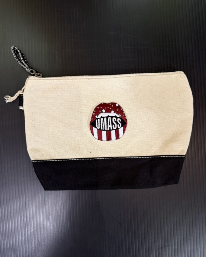 The collage sweatpant has sewn on vintage tees, plaid or bandana + name of school. 50% cotton/ 50% polyester. Drawstring at waist (except XS). Elastic at ankles. (Slight variations may occur.)