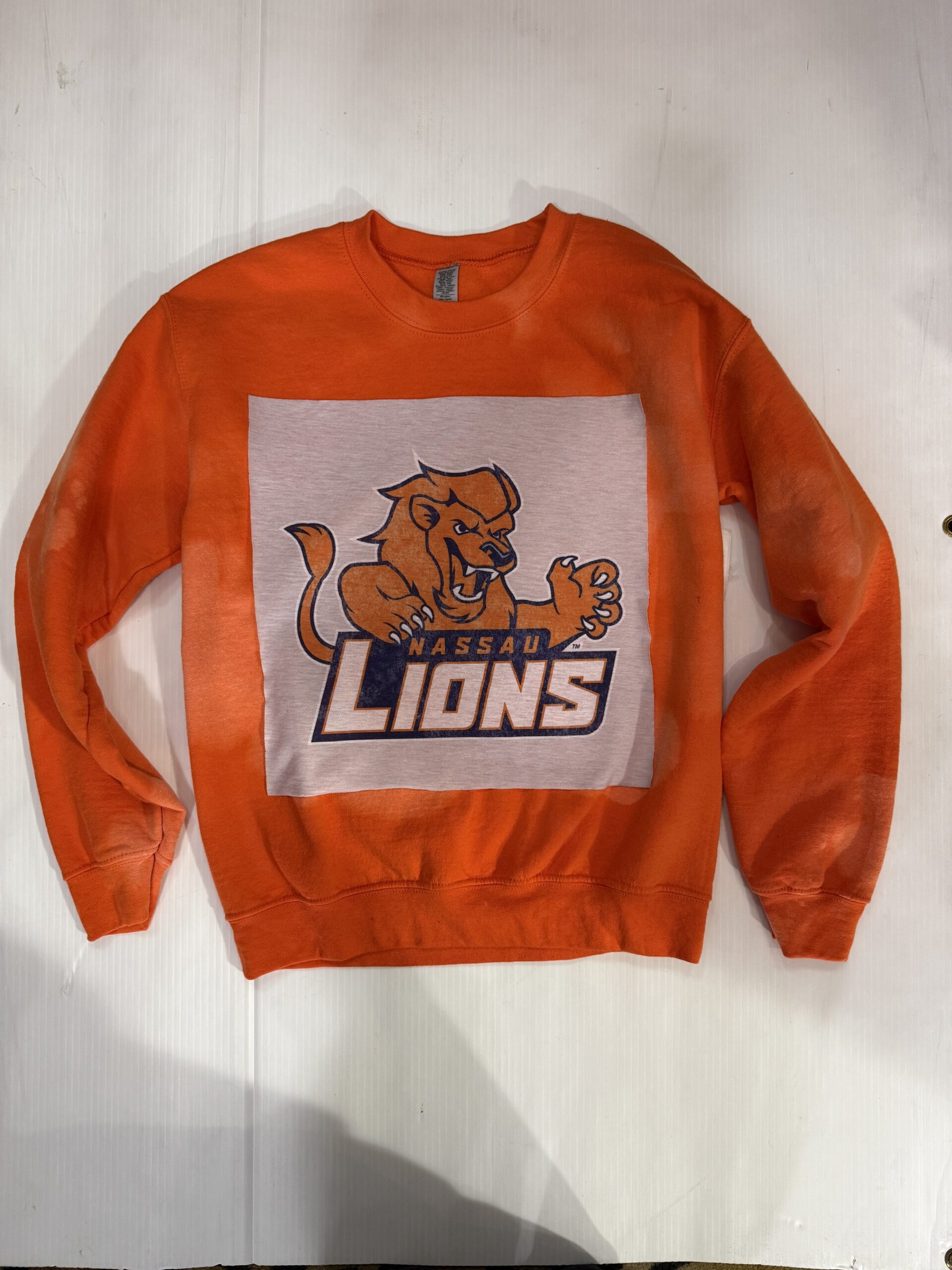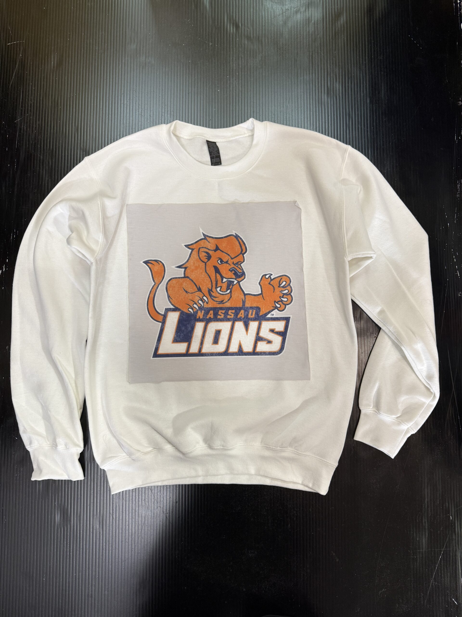 Soft crewneck sweatshirt with a vintage Tee square sewn on the front.