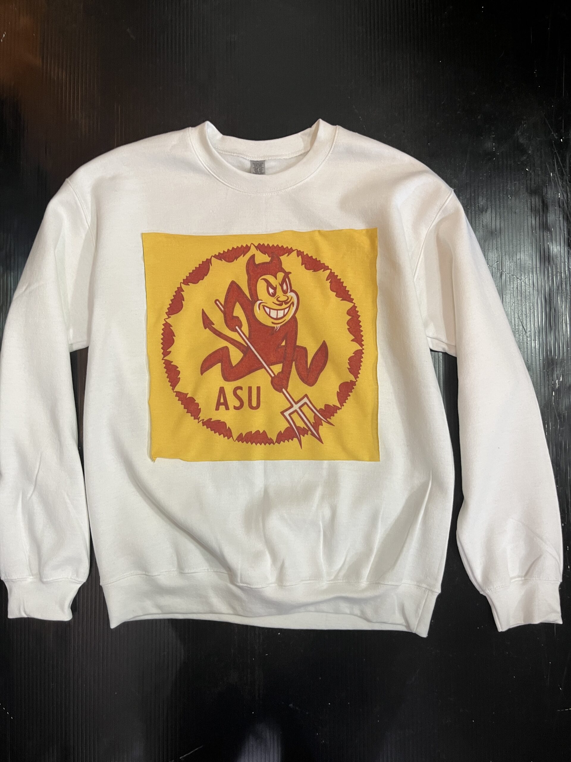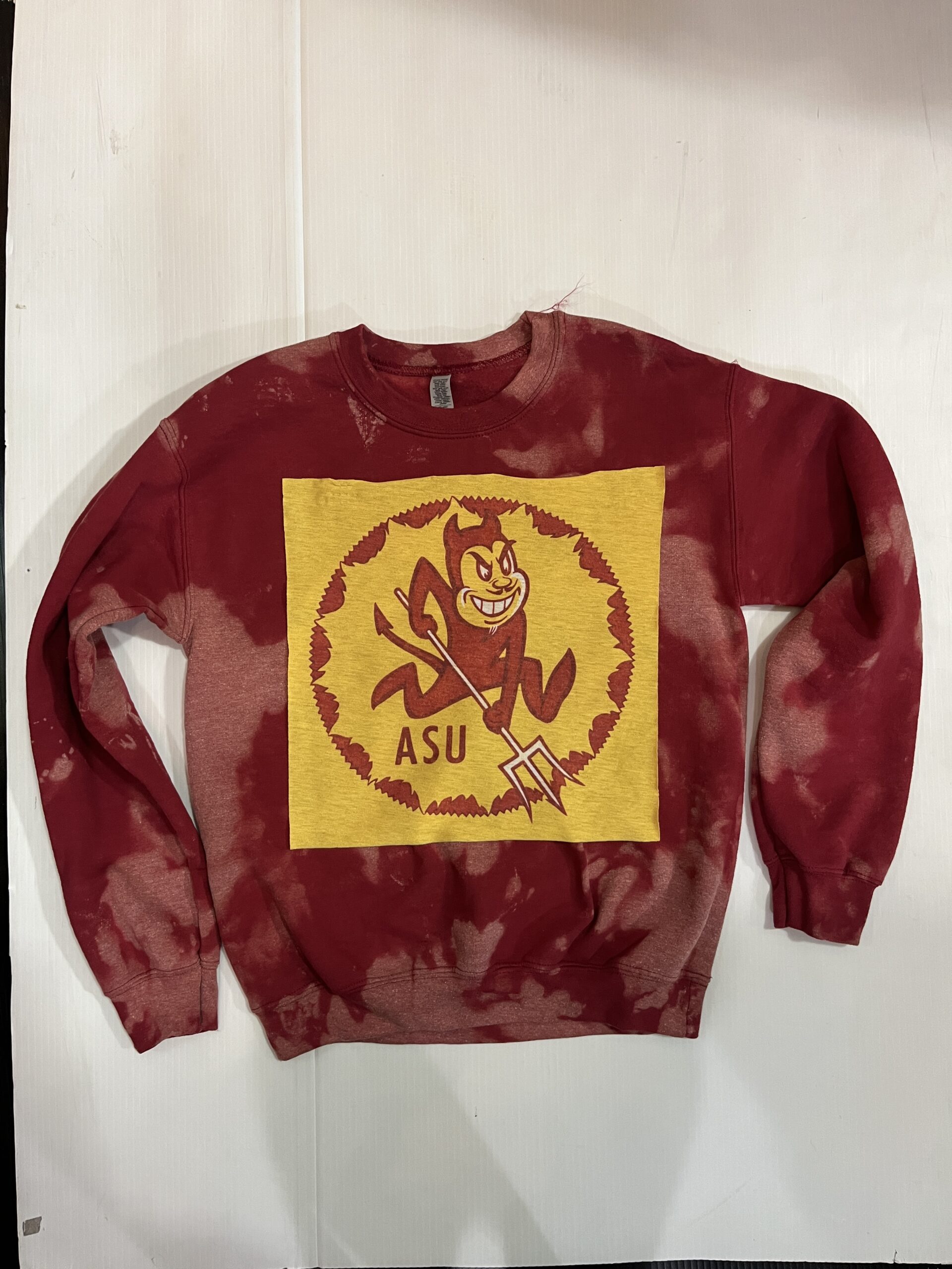 Soft bleached crewneck sweatshirt with a vintage Tee square sewn on the front.