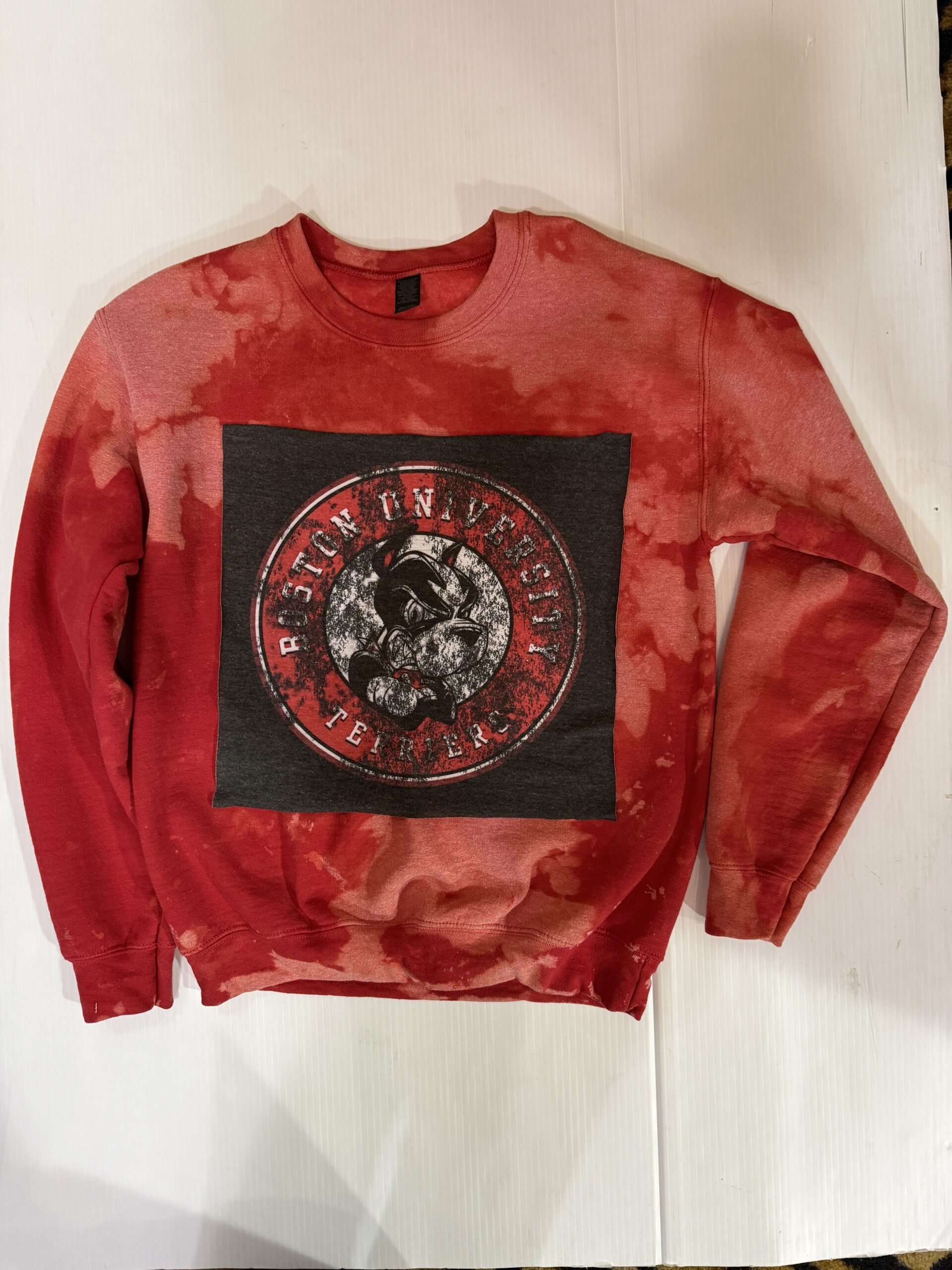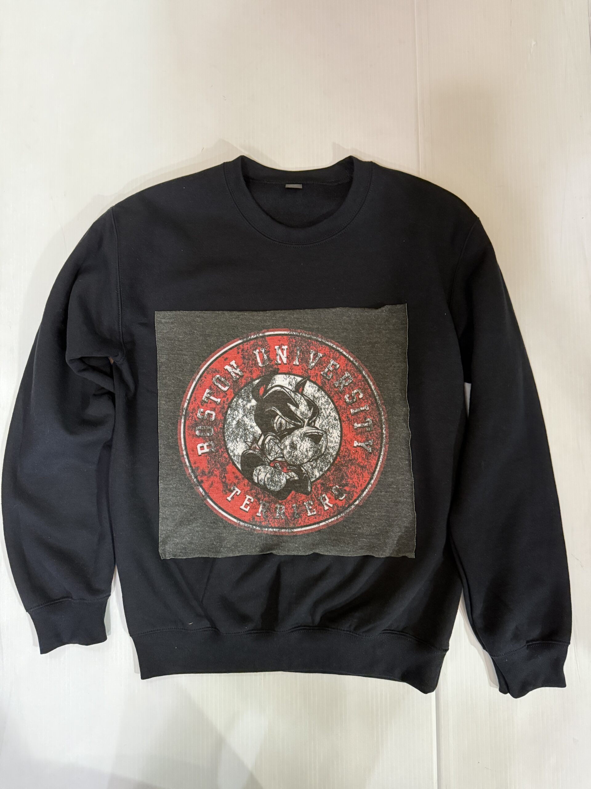 Soft crewneck sweatshirt with a vintage Tee square sewn on the front.