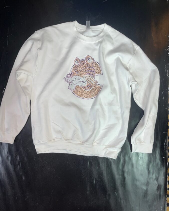 Soft bleached crewneck sweatshirt with a vintage Tee square sewn on the front.