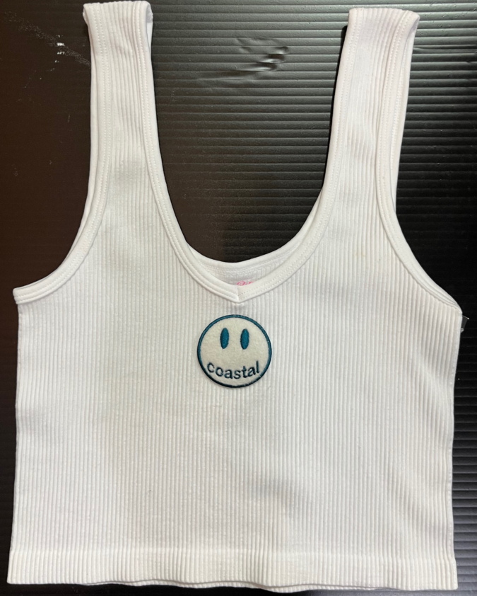 Soft bleached crewneck sweatshirt with a vintage Tee square sewn on the front.