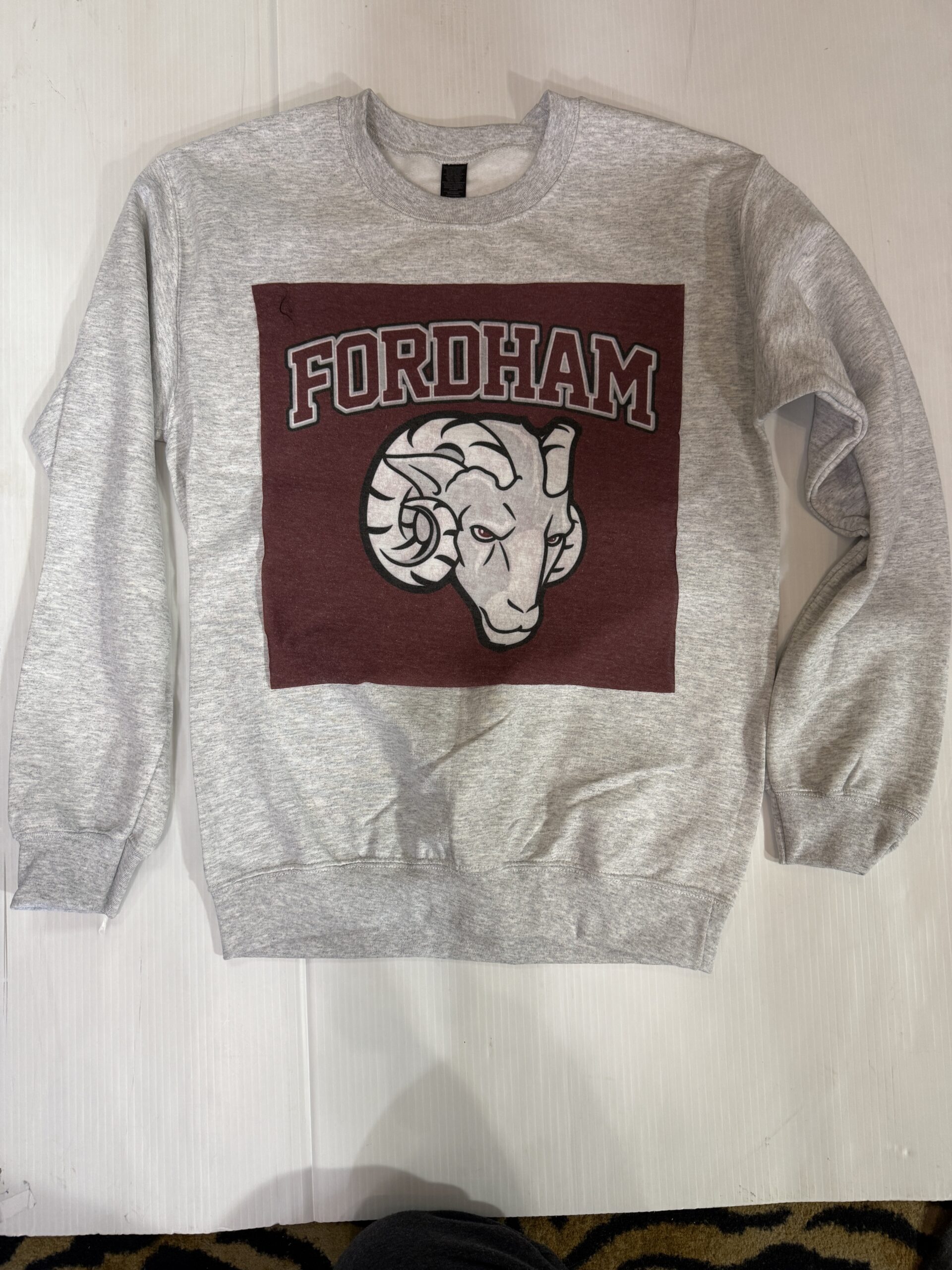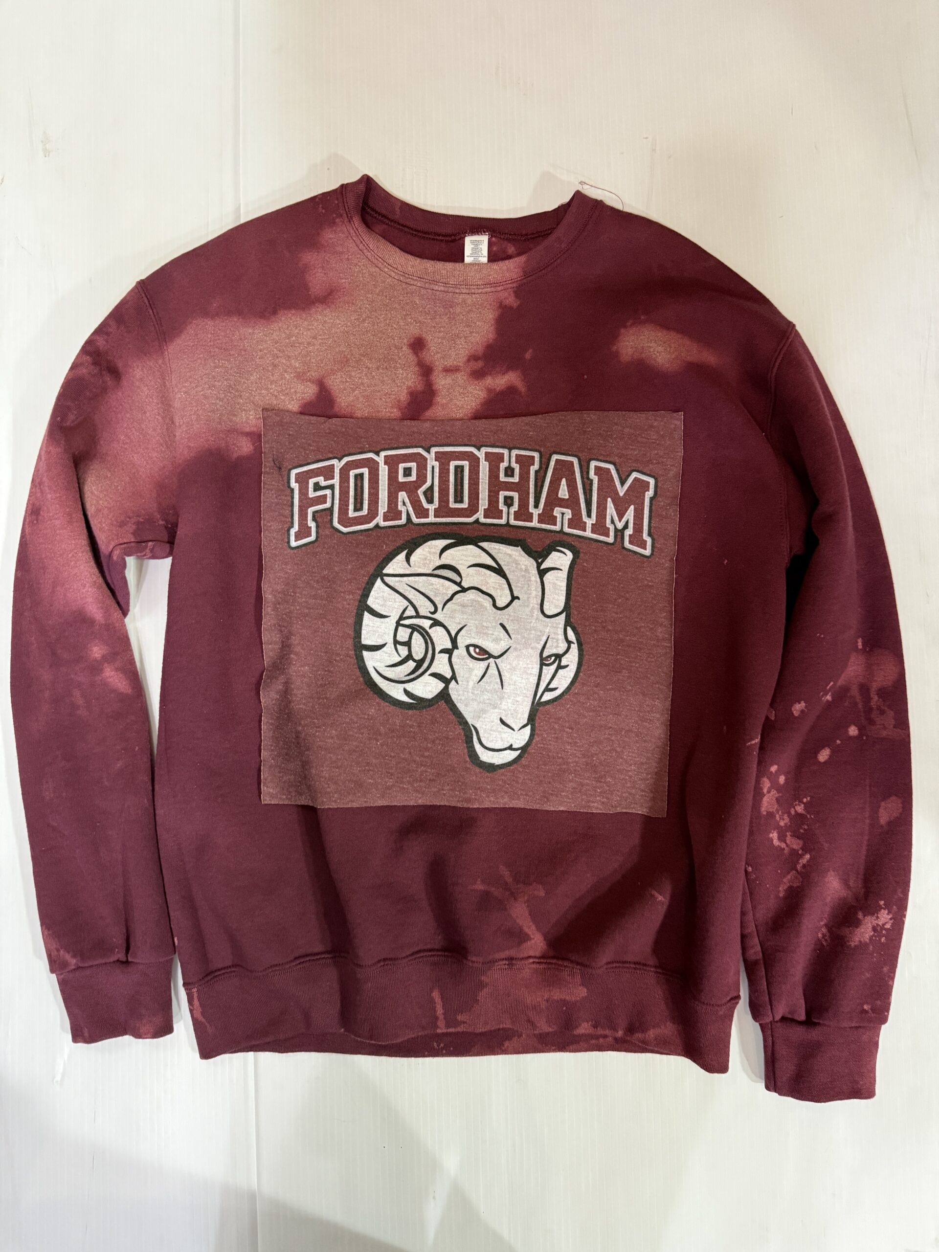 Soft crewneck sweatshirt with a vintage Tee square sewn on the front.