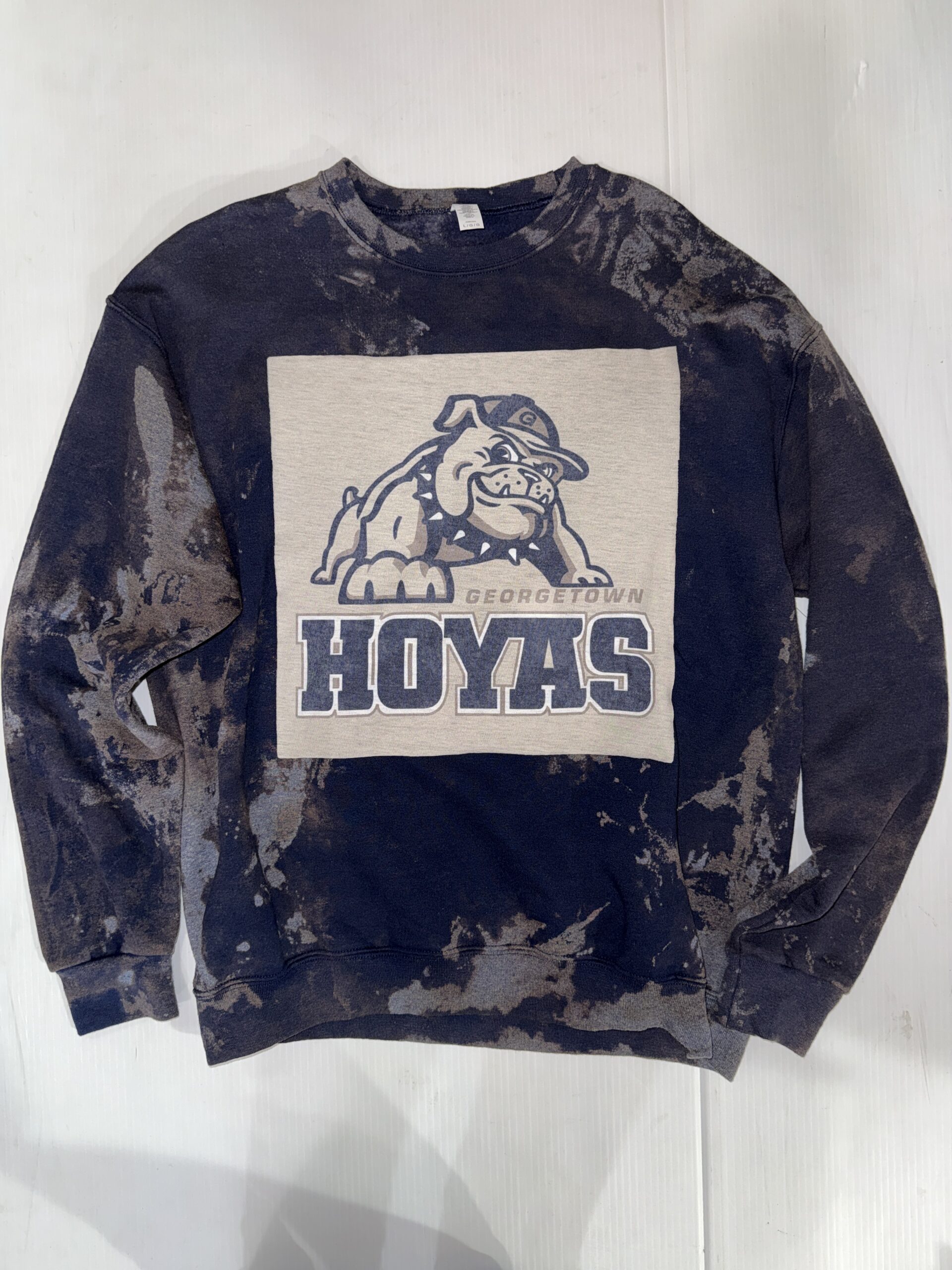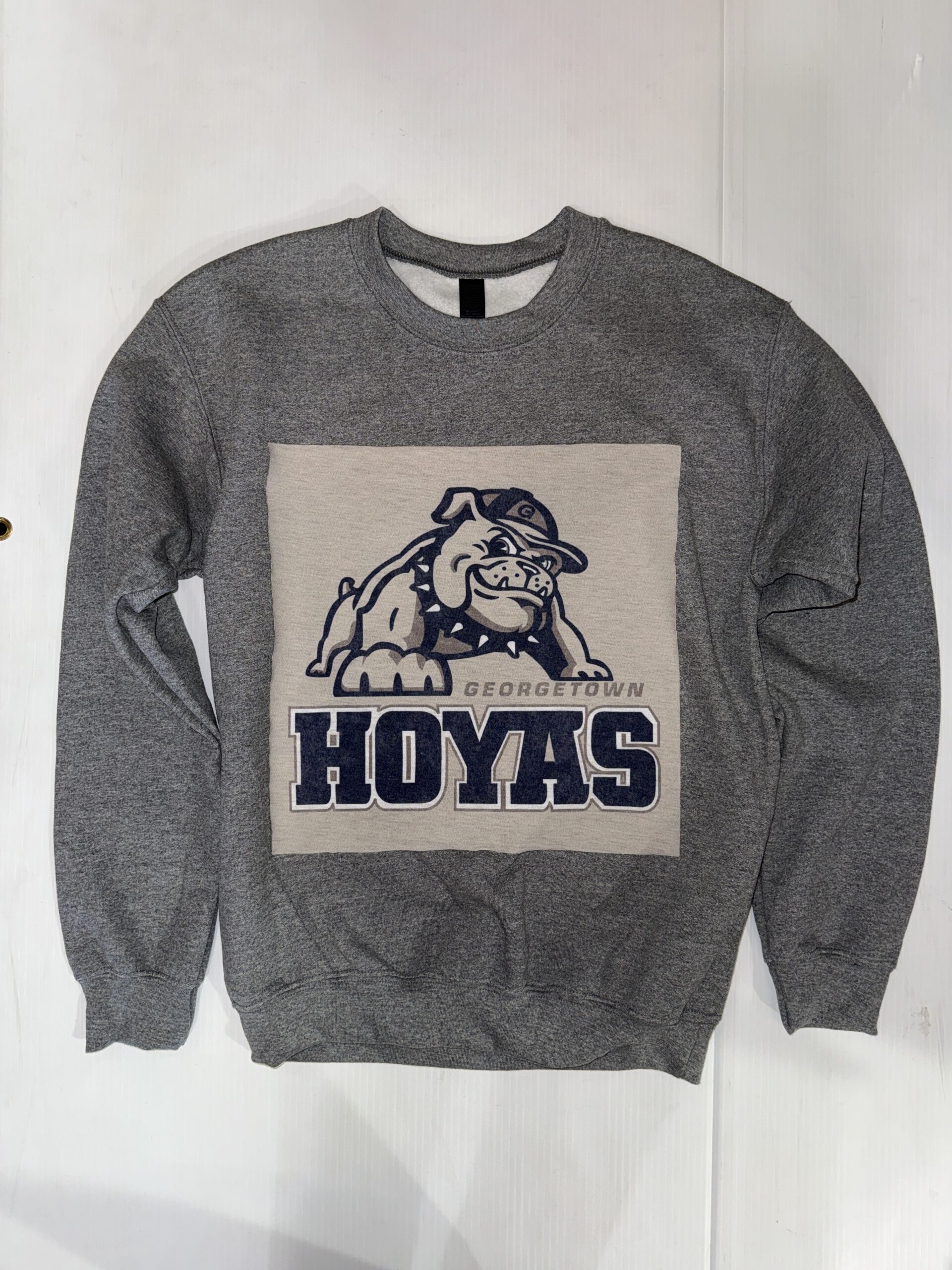 Soft crewneck sweatshirt with a vintage Tee square sewn on the front.