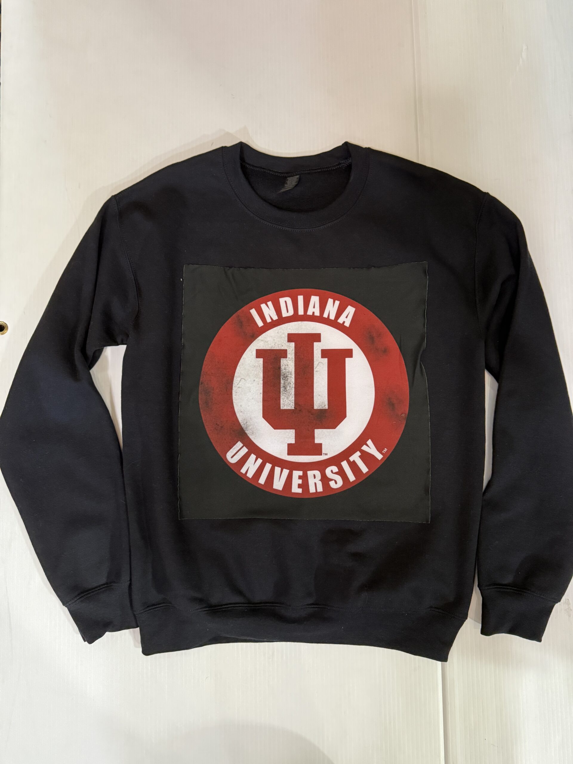 Soft crewneck sweatshirt with a vintage Tee square sewn on the front.