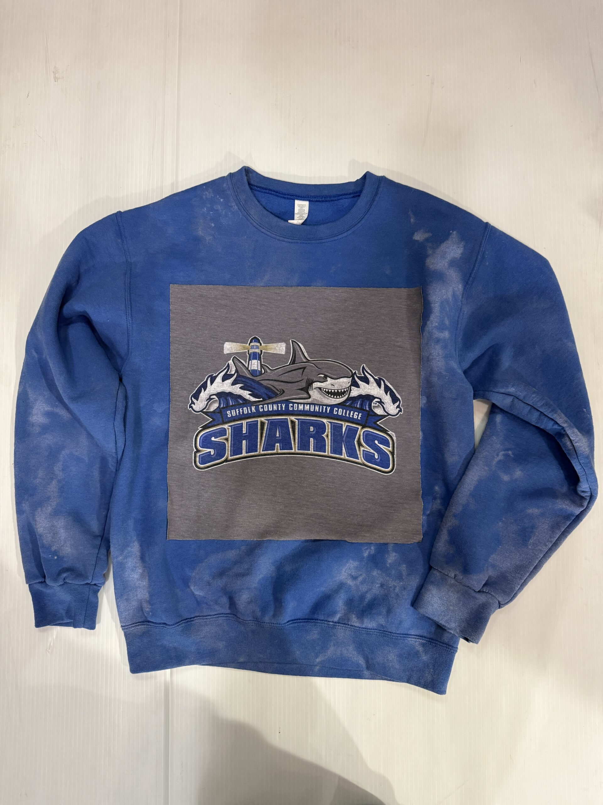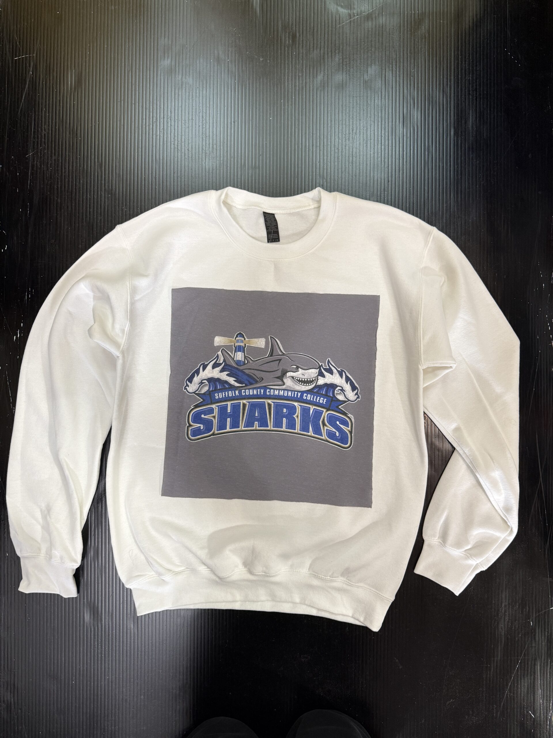 Soft crewneck sweatshirt with a vintage Tee square sewn on the front.