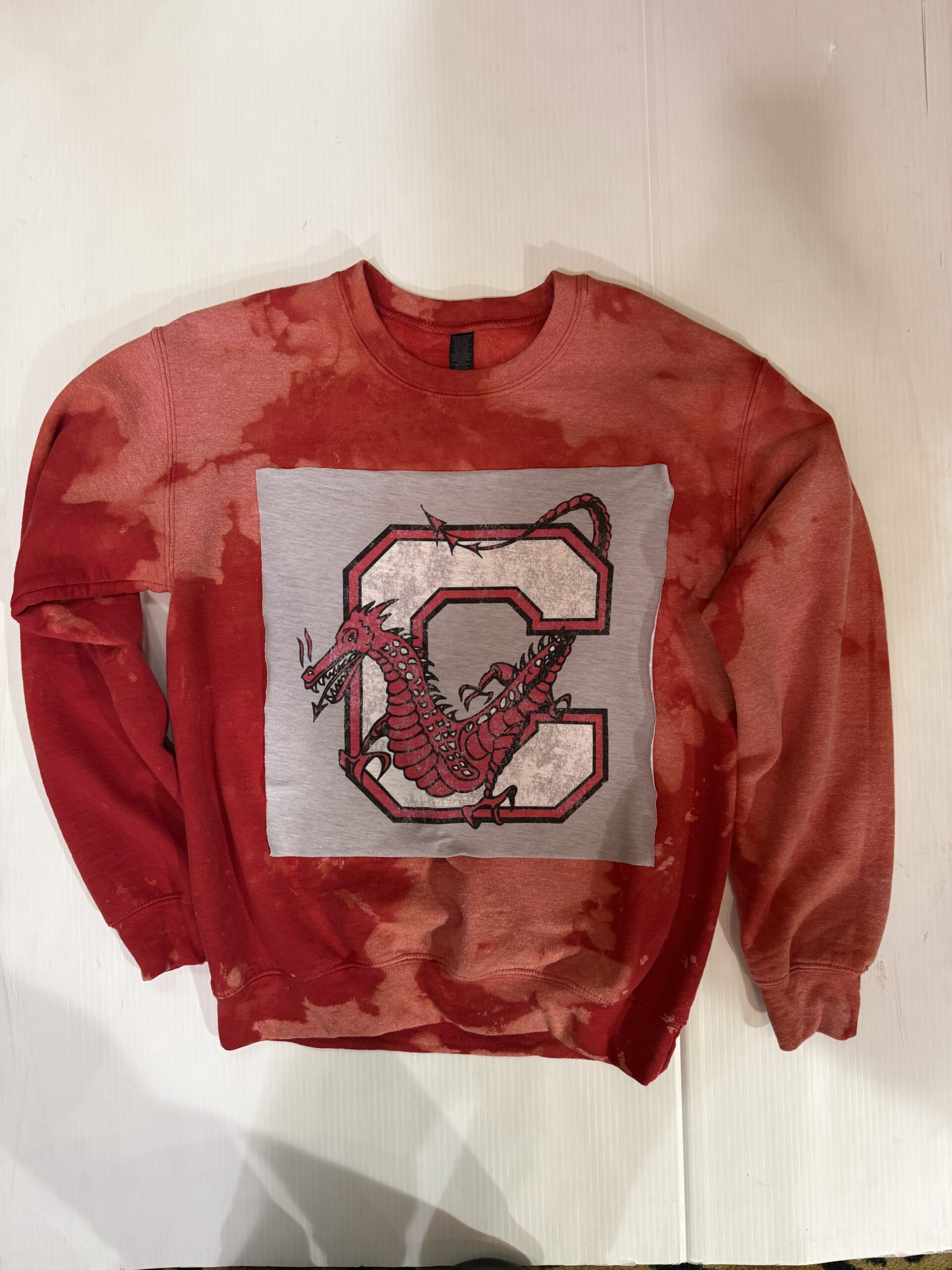 Soft crewneck sweatshirt with a vintage Tee square sewn on the front.