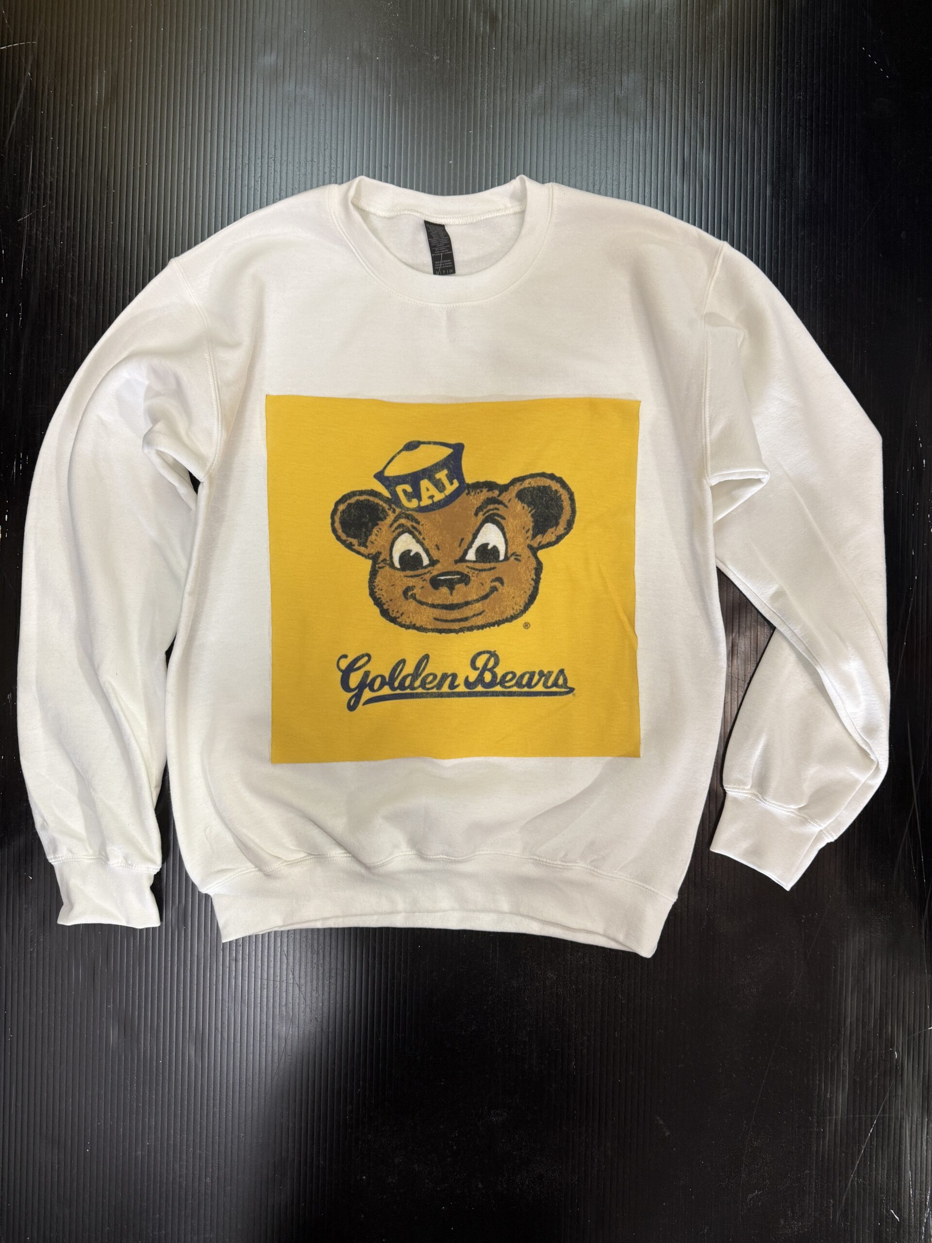 Soft crewneck sweatshirt with a vintage Tee square sewn on the front.