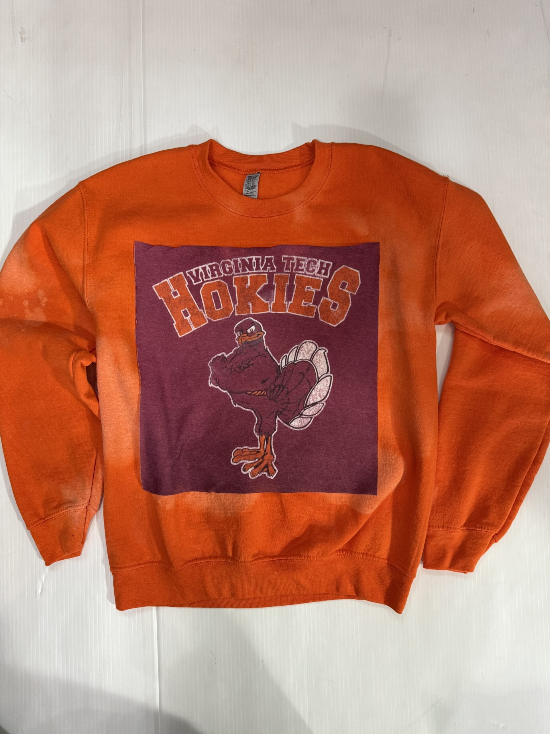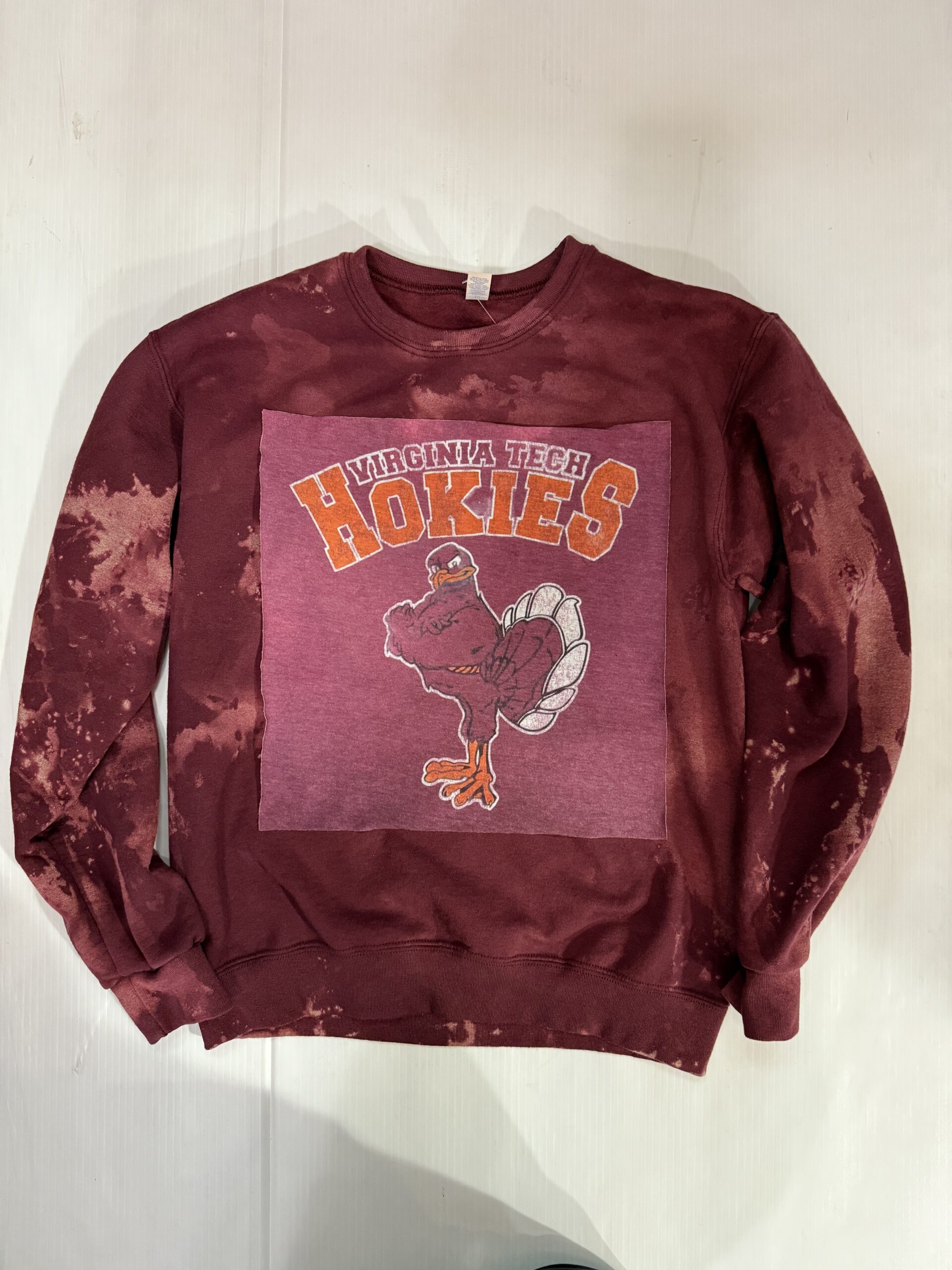 Soft crewneck sweatshirt with a vintage Tee square sewn on the front.