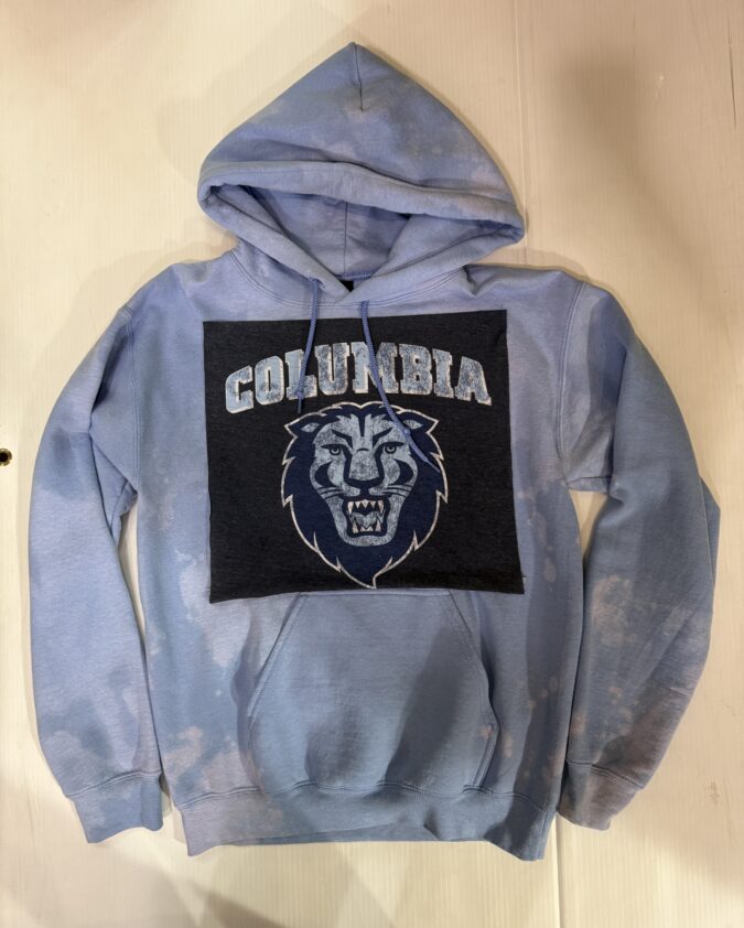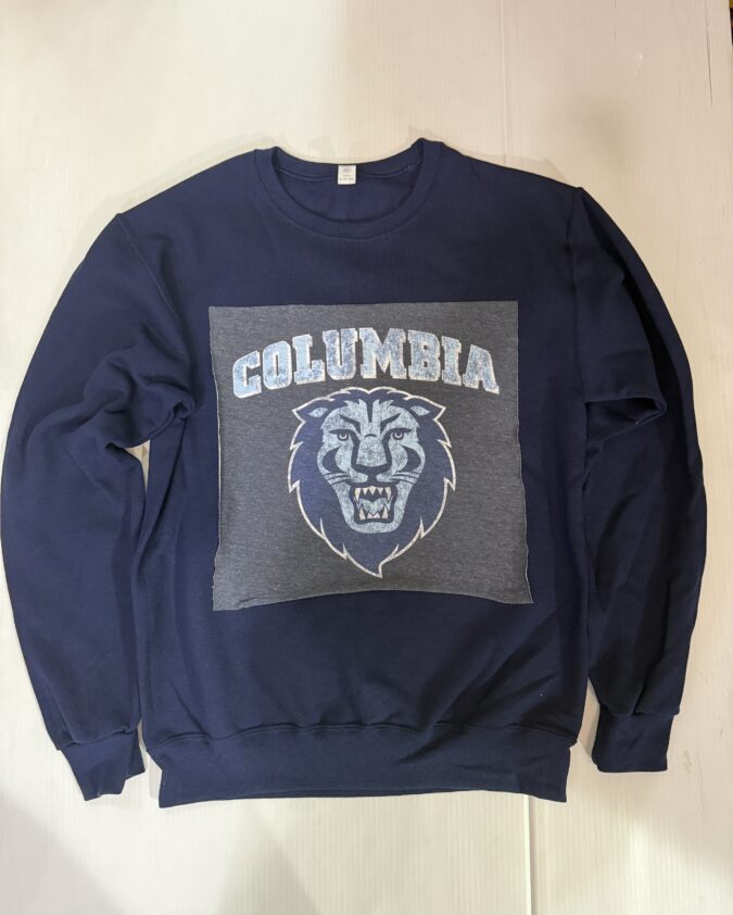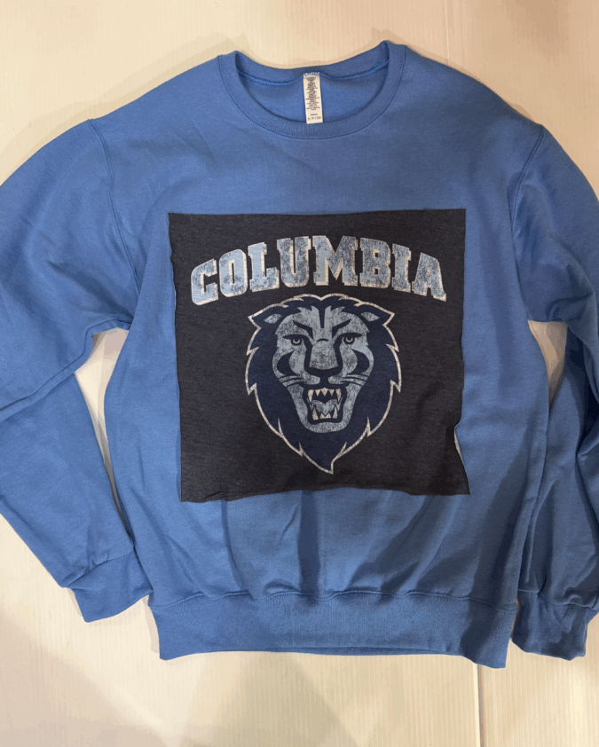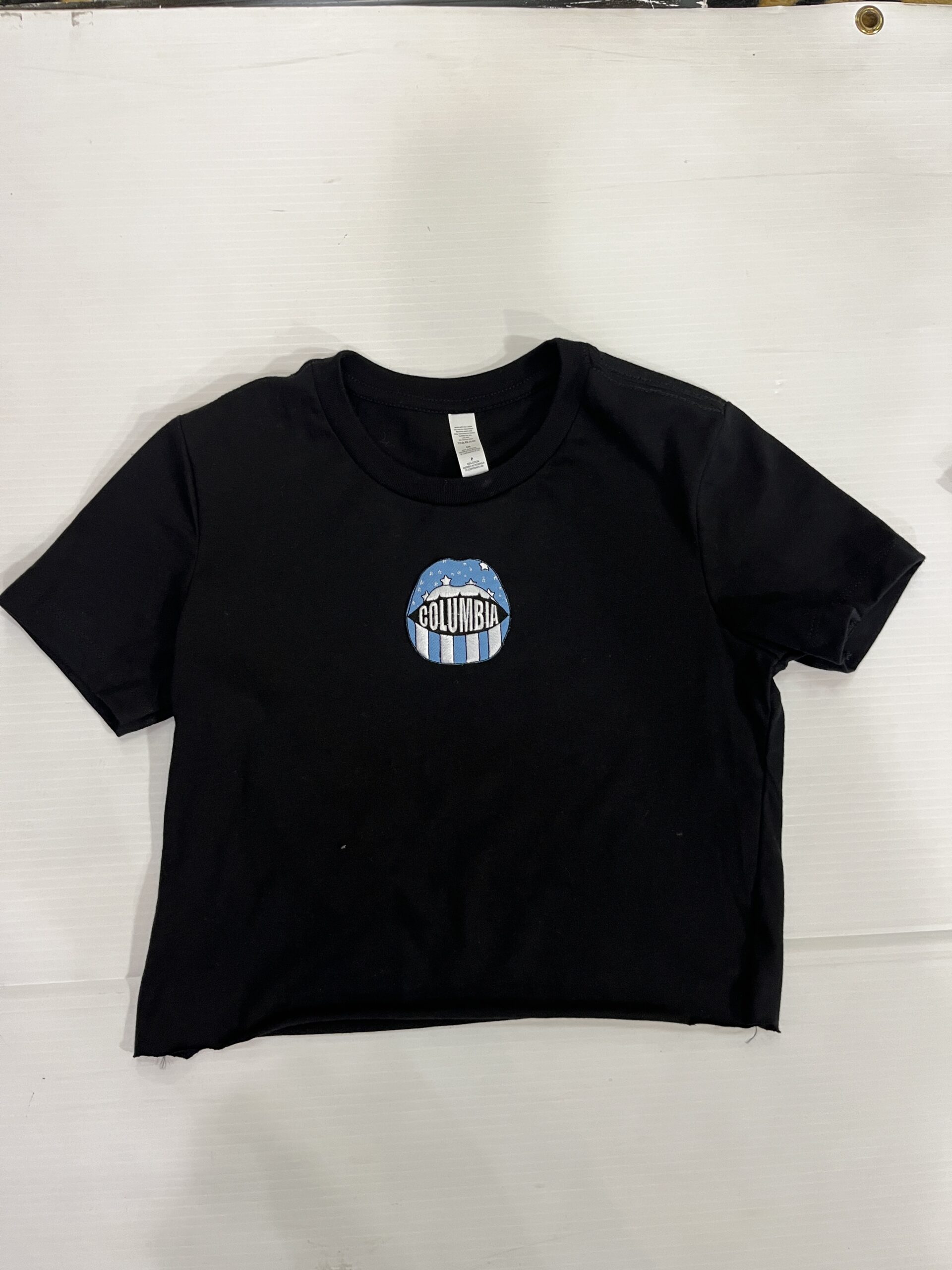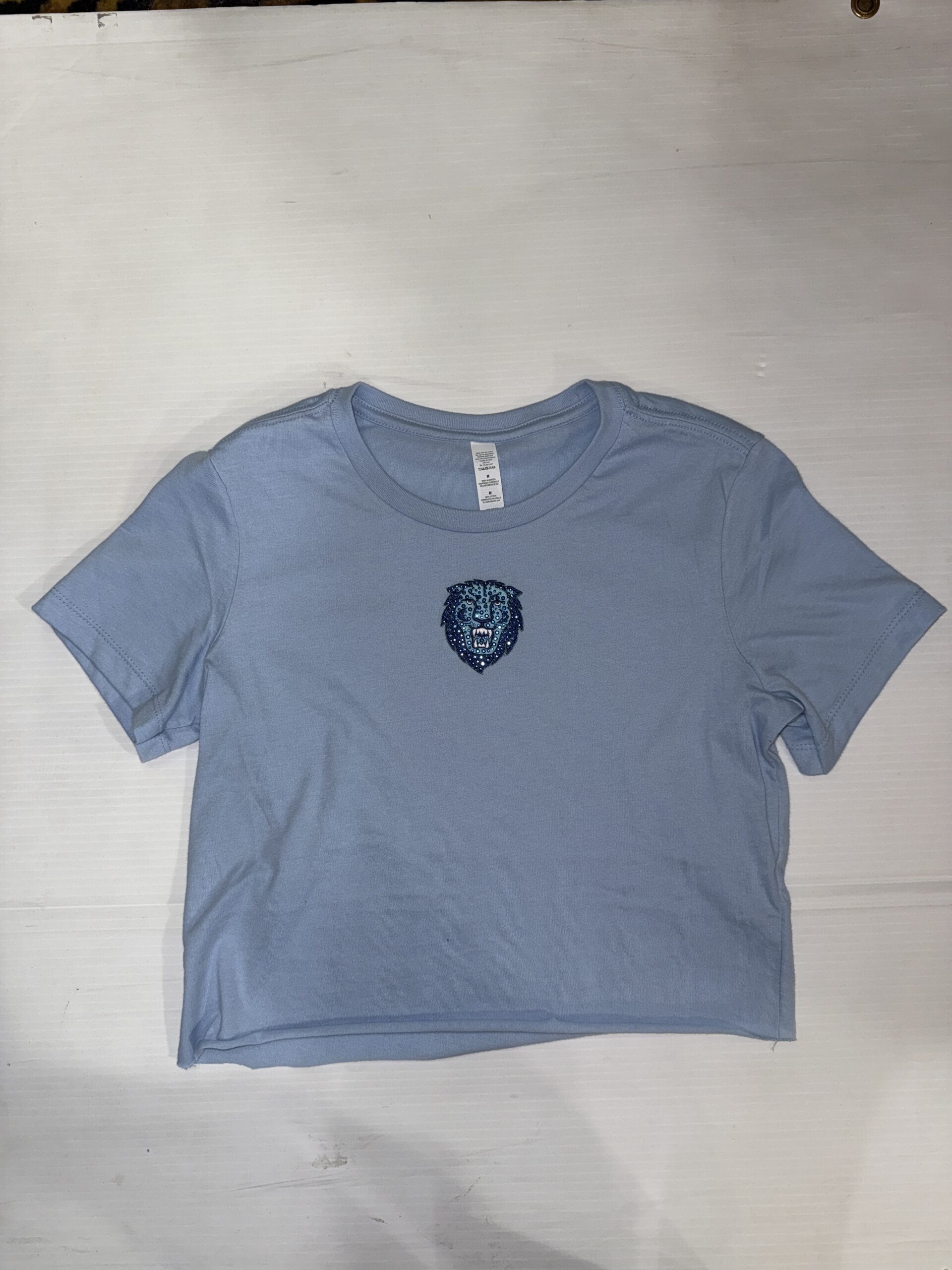 100% cotton baby tee with college logo cropped to 14 inches (raw cut)
