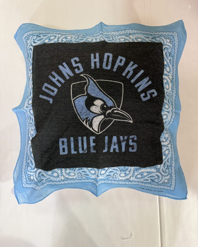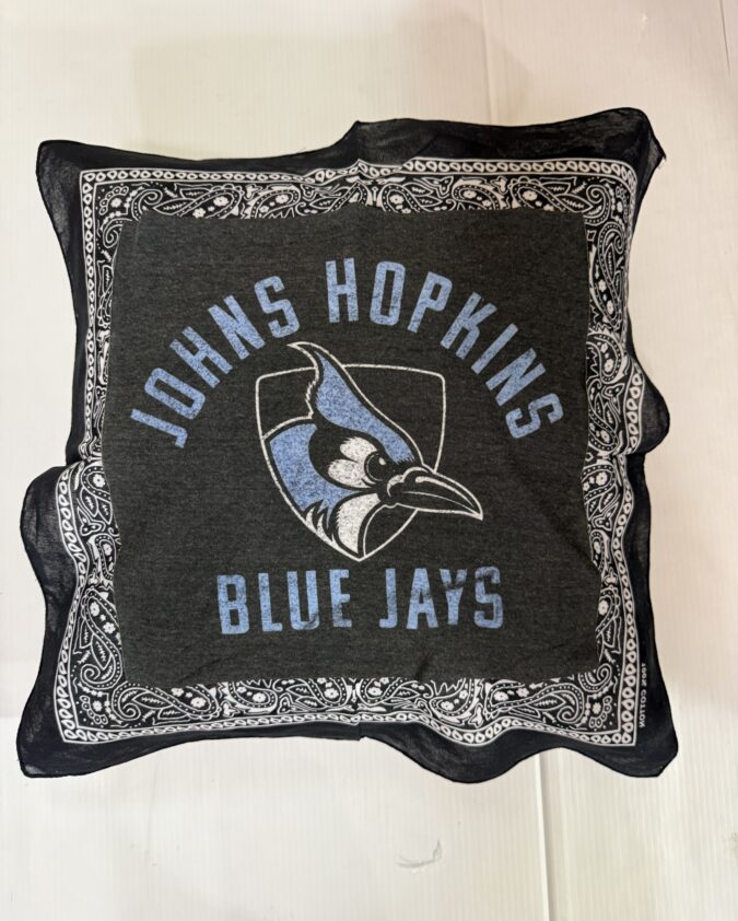 100% cotton baby tee with college logo cropped to 14 inches (raw cut)