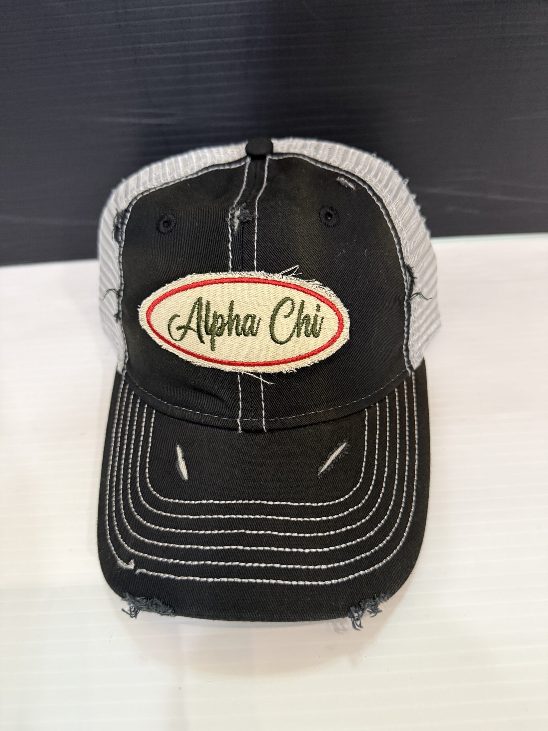 Distressed Trucker Hat – Alpha Chi Omega – A Chi O – Alpha Chi (v)