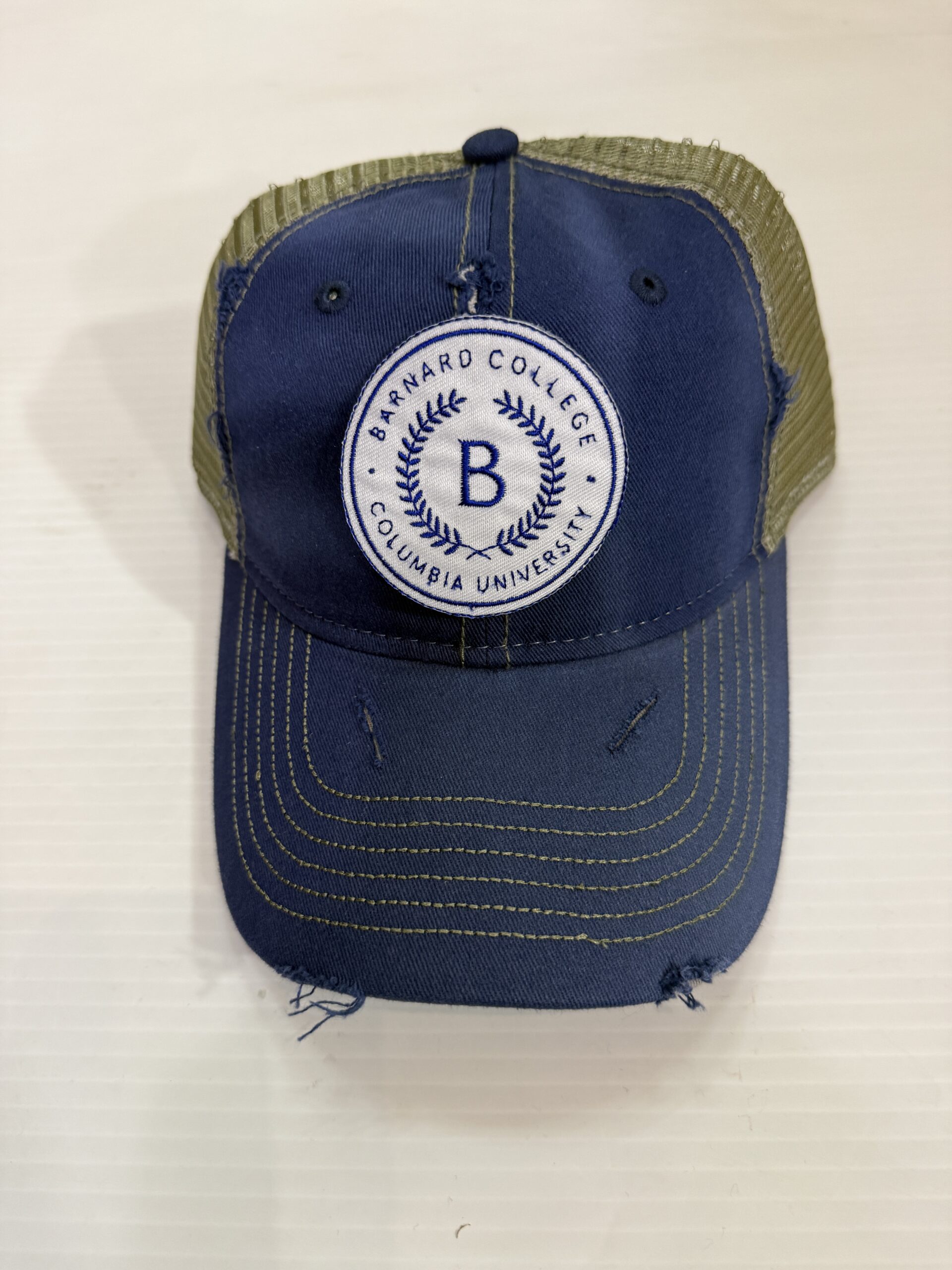 Unisex distressed trucker hat with college logo