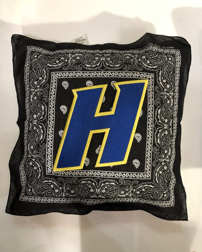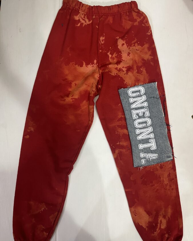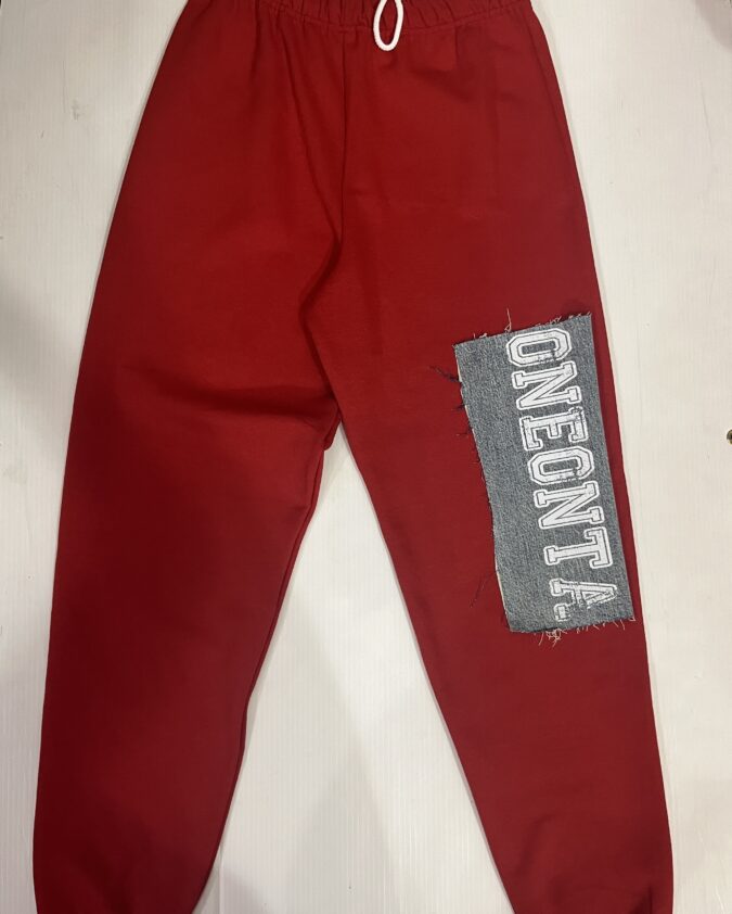 Deconstructed vintage unisex trucker hat with rips and college logo