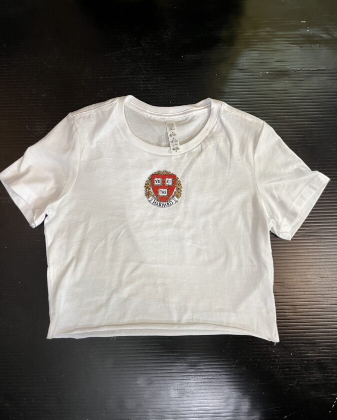 Deconstructed vintage unisex trucker hat with rips and college logo