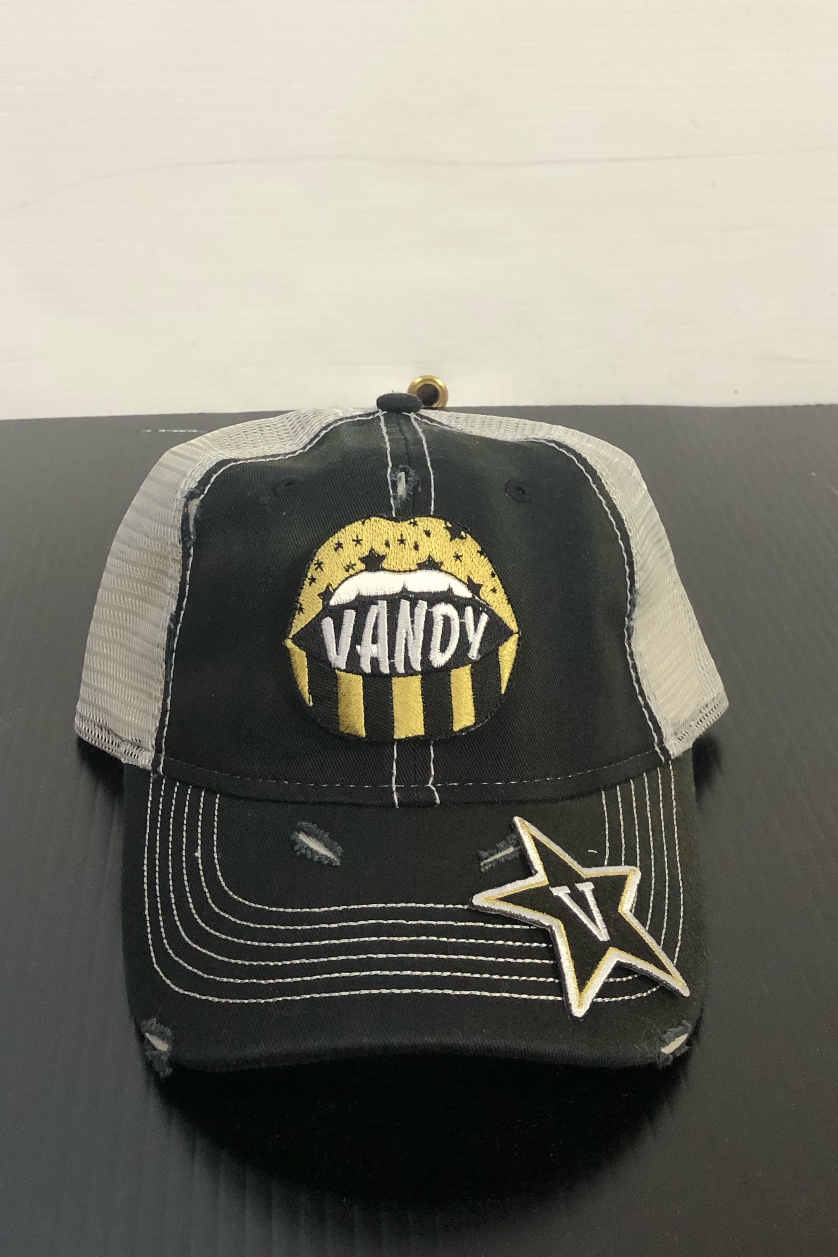 Distressed vintage trucker with Vandy logos