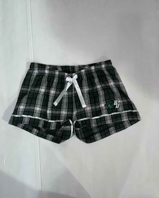 This Flannel Short has a 2-ply elastic waistband with a 3/8″ satin drawcord, satin piping at the leg openings, and the college logo on the leg. Pure comfort that’s completely cute.