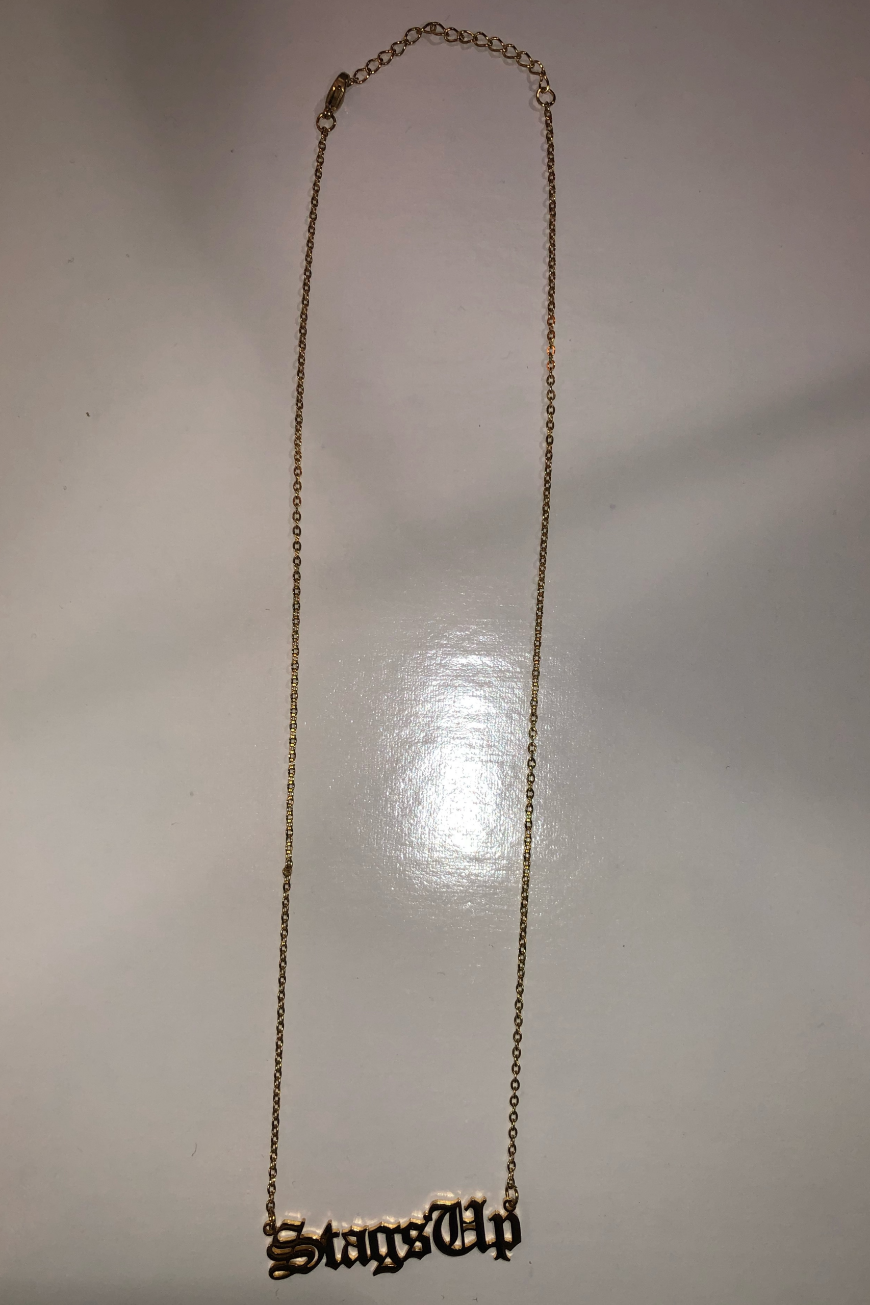 Gold College nameplate with 18 inch chain and 1.5 inch extender. Made from Stainless Steel.