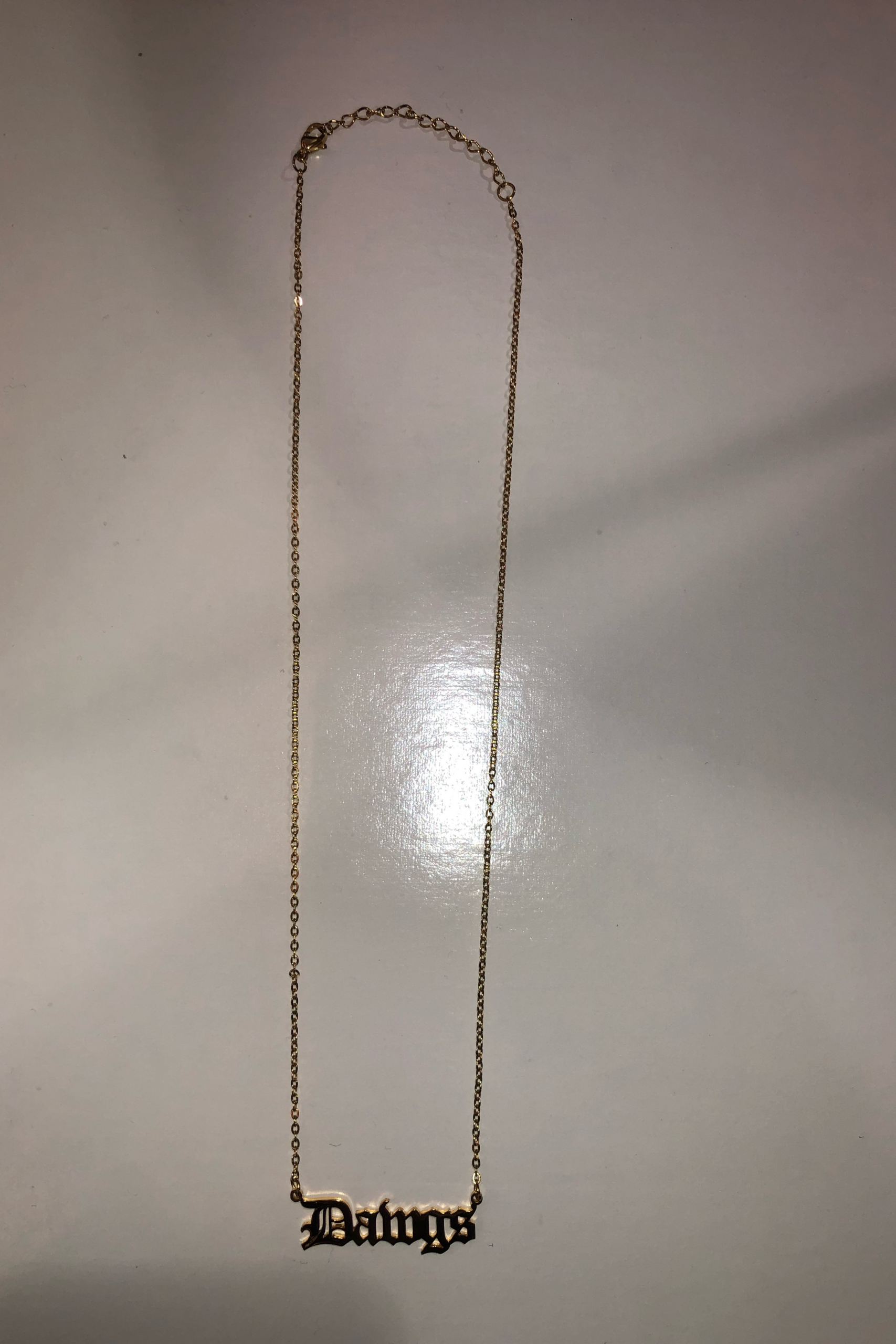 Gold College nameplate with 18 inch chain and 1.5 inch extender. Made from Stainless Steel.