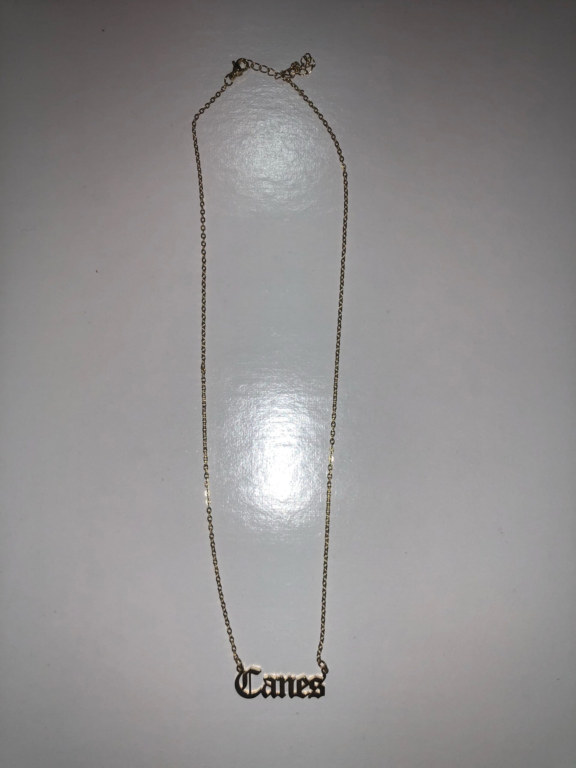 Be the first to review “Gold College Nameplate Necklace – Miami (Canes)”