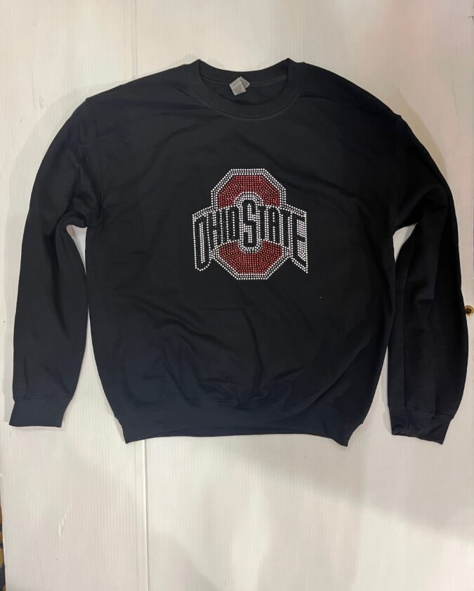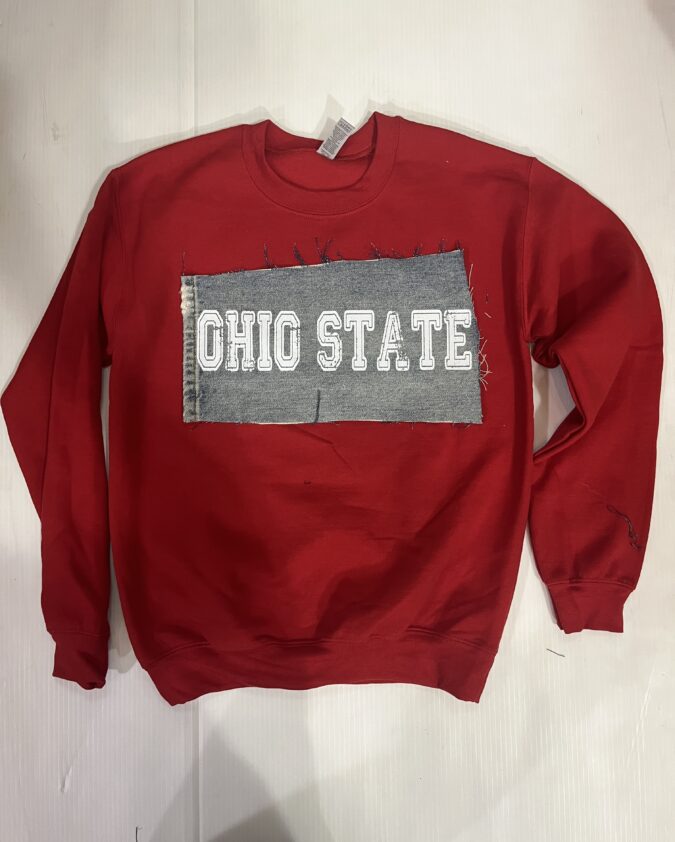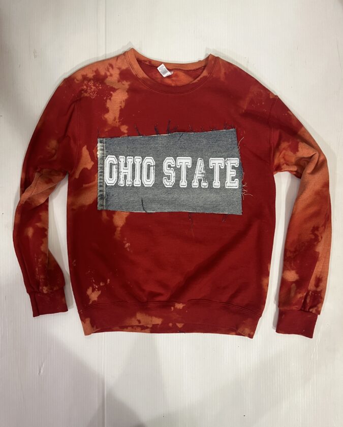 Half solid/ Half tie dyed crewneck cotton sweater with destessed neck, sleeves, and bottom.